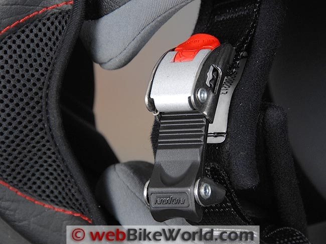 The N85 has the Nolan “Microlock” chin strap retainer, which works well but is a bit bulky. The padding is adequate and long enough to protect the rider’s neck, however.