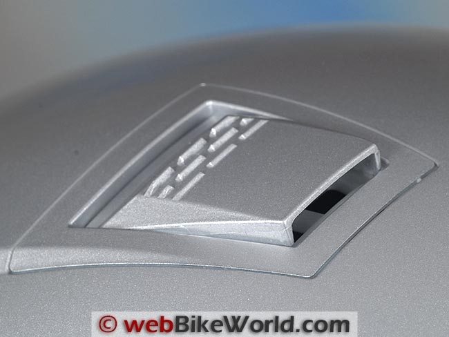 The chin vent has a small slider tab to open or close the shutter behind the plastic mesh screen. Note that down is closed and up is open — it’s not obvious, even when looking closely inside the chin vent with a flashlight.