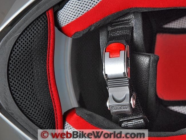 The Nolan N86 has the Nolan “Microlock2” chin strap retainer, which works well.