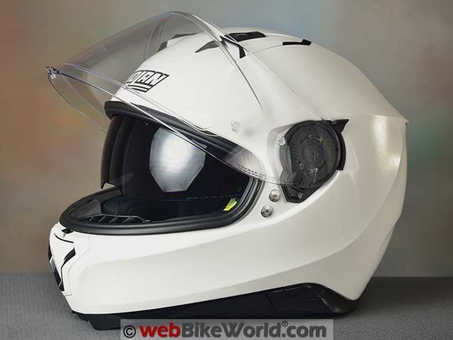 The N87 is something of a surprise in the helmet weight department also. This CE version in size XL comes in at 1634 grams (3 lbs., 9-5/8 oz.), which is darn good for a size XL, four star rated SHARP helmet with all the bells-and-whistles, including a large internal sun visor.