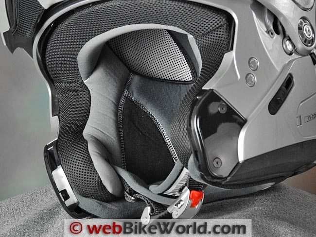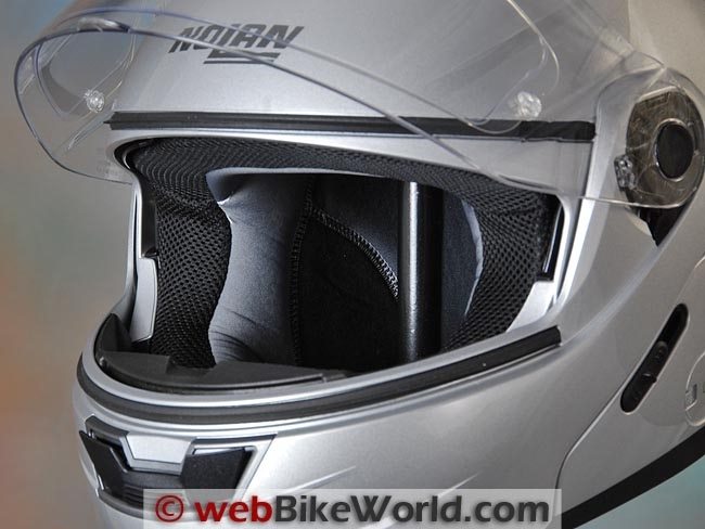 The removable liner has the Nolan “Clima-Comfort” washable fabric with the same type of large neck roll found on the N90 for wind and noise reduction. This extra section of neck roll is thickly padded on on the N91 and has a soft feel.