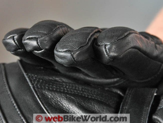The leather is super-soft and pliable; again feeling more like a dress glove than a heavy-duty motorcycle glove. At least there’s some pretense of abrasion protection, with overlapping leather sections on the back of the main knuckles and an extra layer over the palm and inside of the thumb.