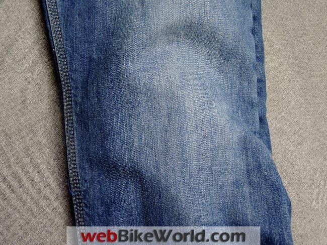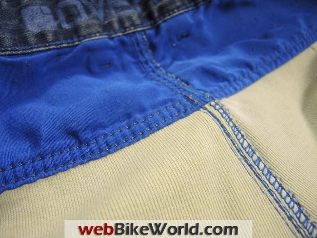 Also, the Manx jeans do not have the water-resistant barrier between the outer denim layer and the inner Kevlar. This allows more air to flow through the jeans, and we definitely noticed the difference in summer riding.