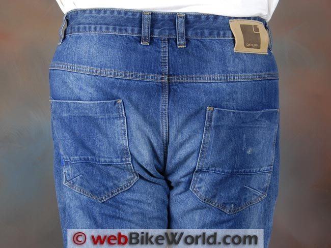 The jeans have pockets at the knees and hips for the CE-approved Level 1 SAS-Tec armor. It fits very nicely in the Manx jeans and is virtually unnoticeable on or off the bike.