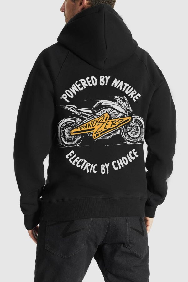 The collaboration clothing line isn’t huge, however. It consists of three articles of clothing, all sharing the same design and artwork. They have a traditional hoodie, a sweatshirt, and a T-shirt all featuring the same ‘POWERED BY NATURE – ELECTRIC BY CHOICE” motif circling around a drawing of one of Zero’s motorcycles.