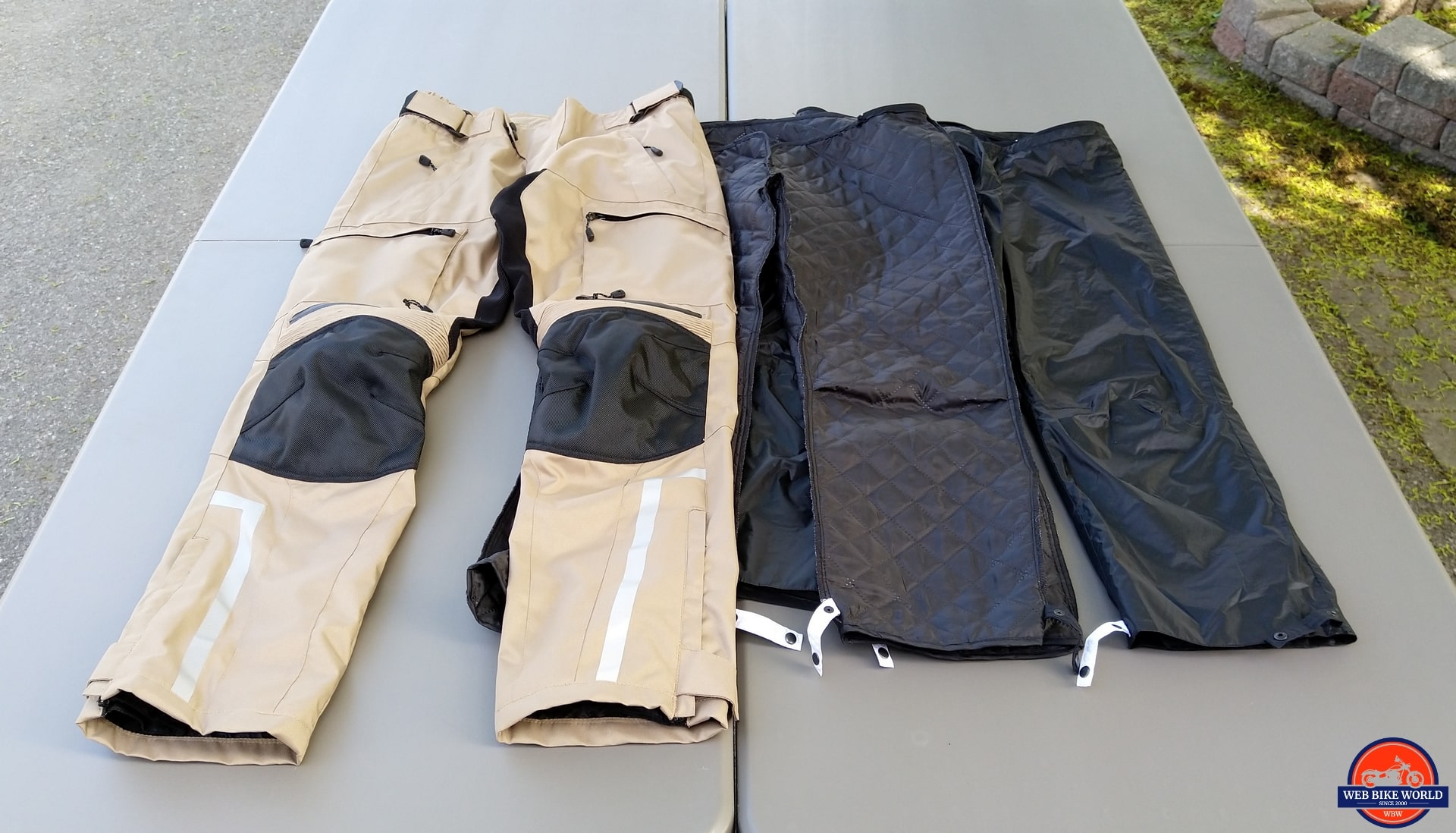 Removing one or both of the liners with a personal base layer left in place, the pant shell does a very good job of maintaining comfort in moderate (10-15C or 50-59F) spring temperatures, performing as well if not even better than two other pair of adventure-touring pants with similar build features.