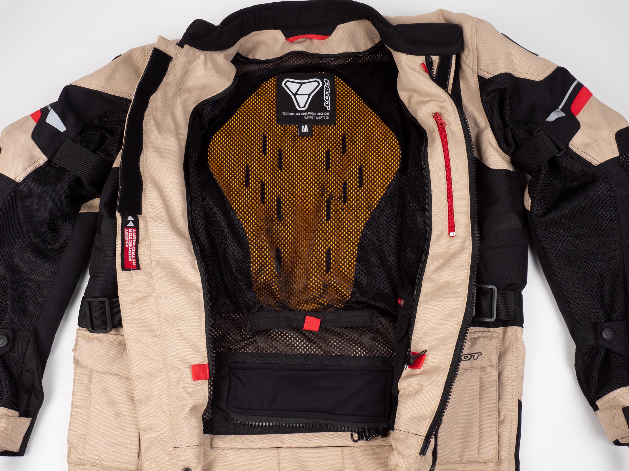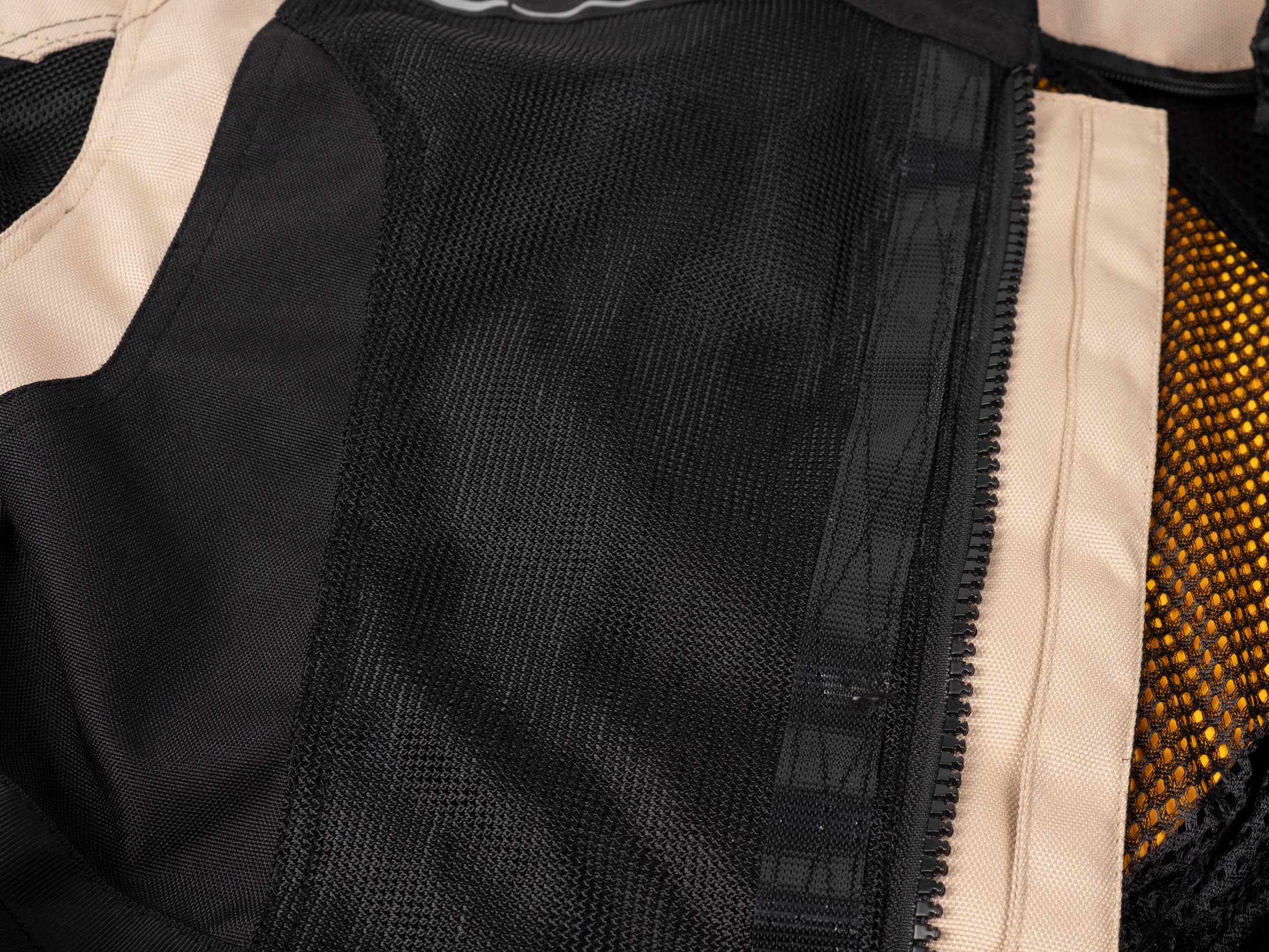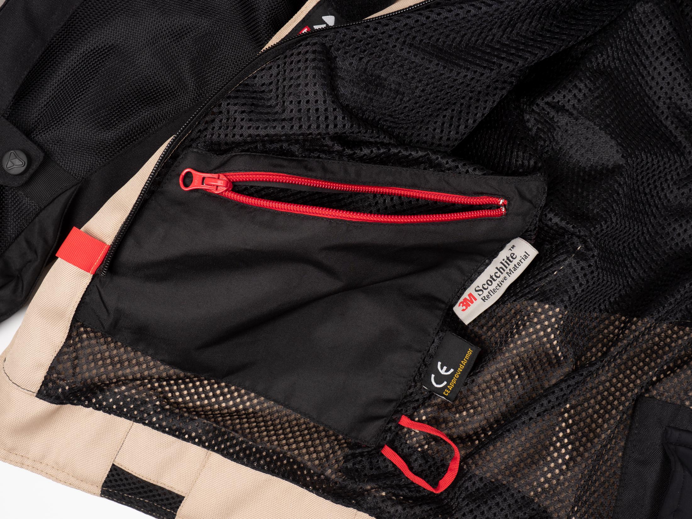 For comfort, the main jacket shell has a thin mesh lining that is only interrupted by the pockets for the included armor which uses a soft quilted material. The Reissa ® liner also has its own mesh lining and the thermal liner has a soft quilted polyester surface so no matter the configuration, the jacket is never scratchy or rough on the inside.