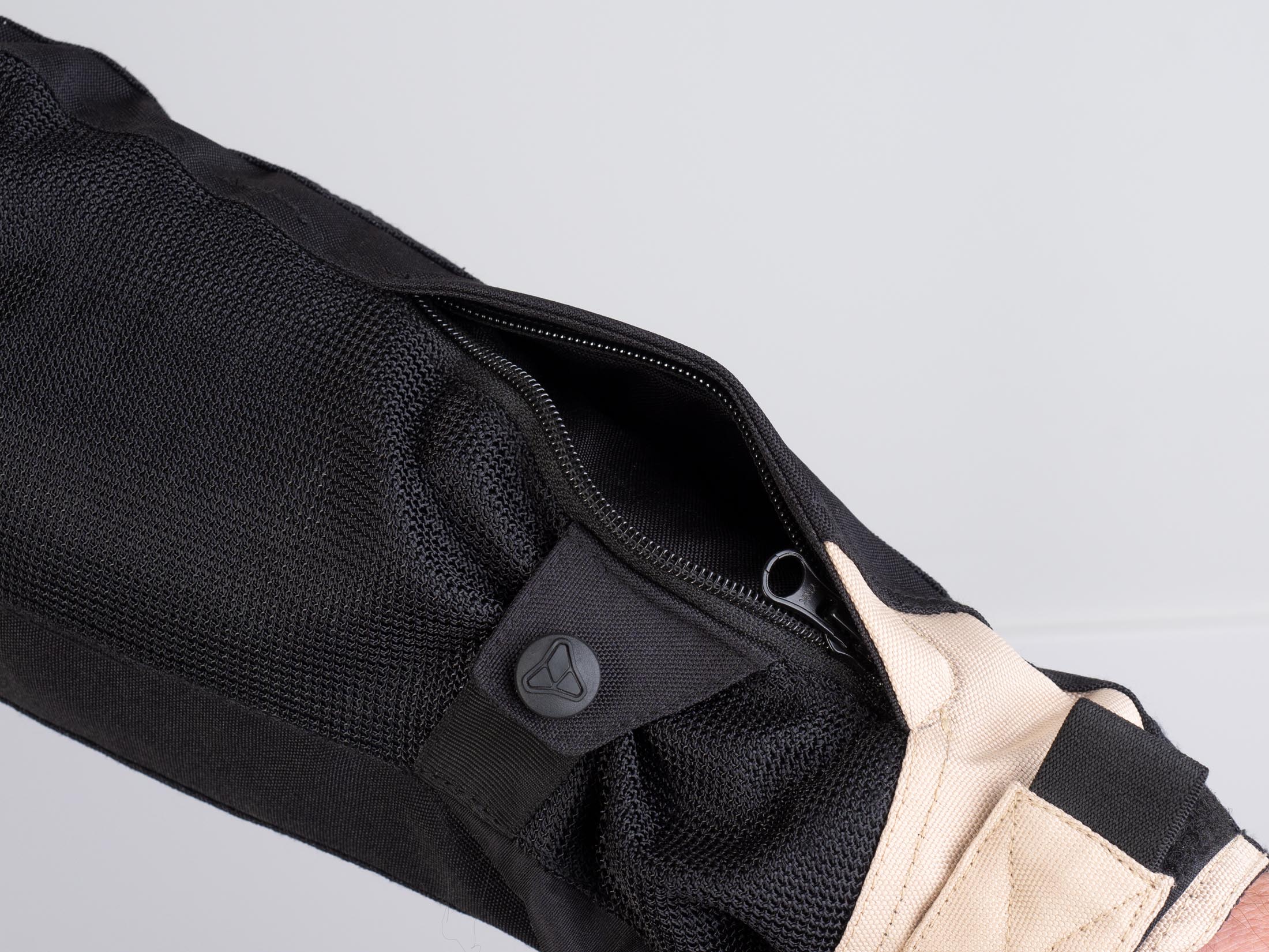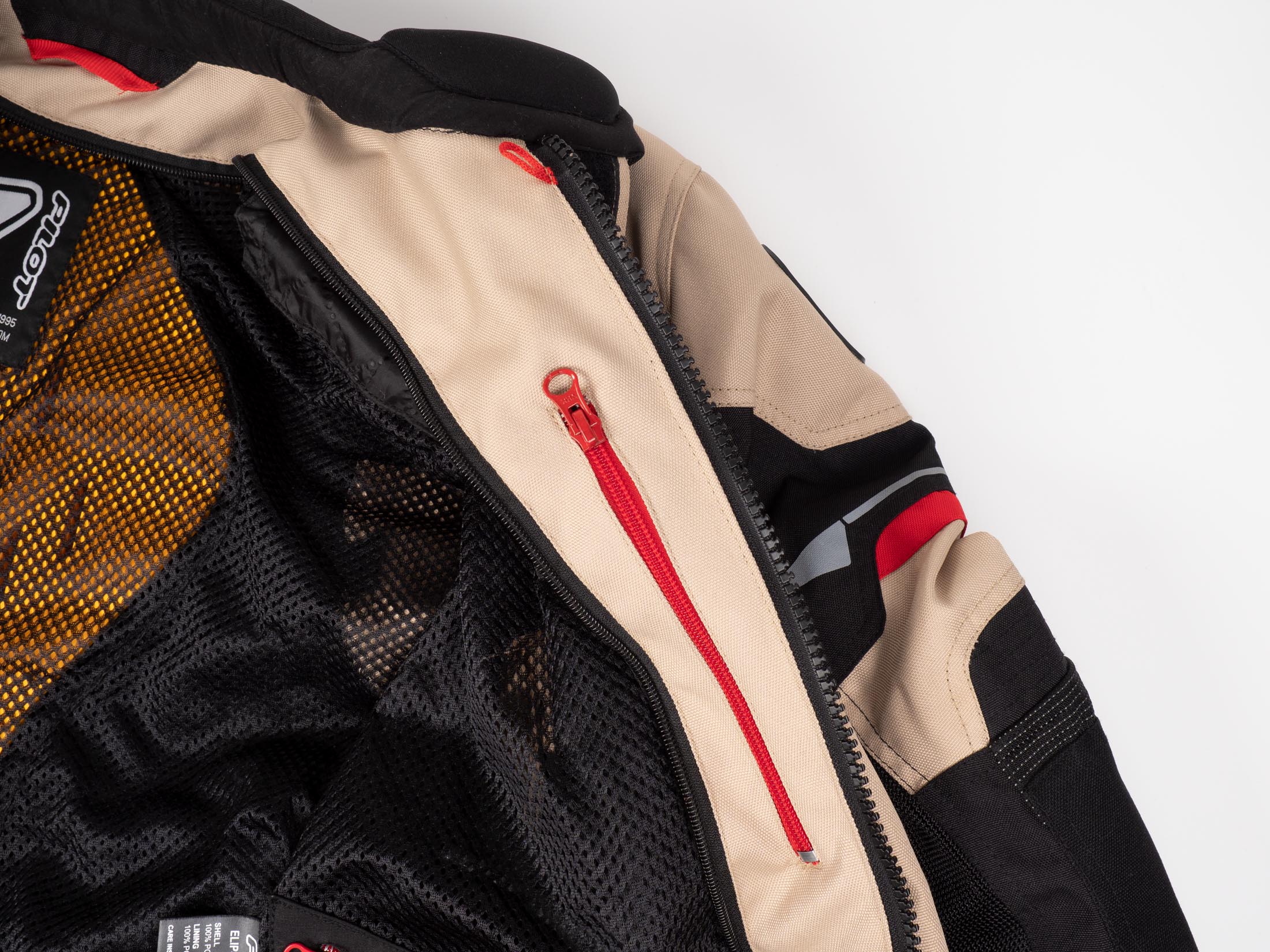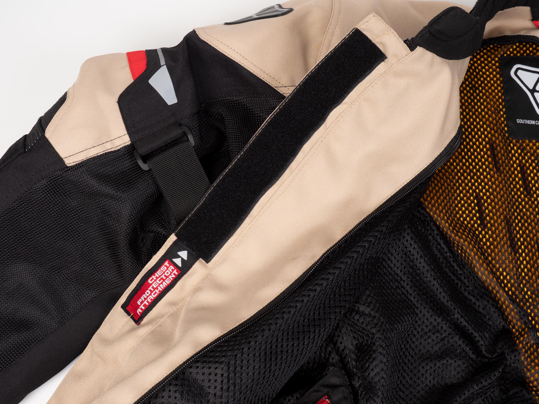 For comfort, the main jacket shell has a thin mesh lining that is only interrupted by the pockets for the included armor which uses a soft quilted material. The Reissa ® liner also has its own mesh lining and the thermal liner has a soft quilted polyester surface so no matter the configuration, the jacket is never scratchy or rough on the inside.