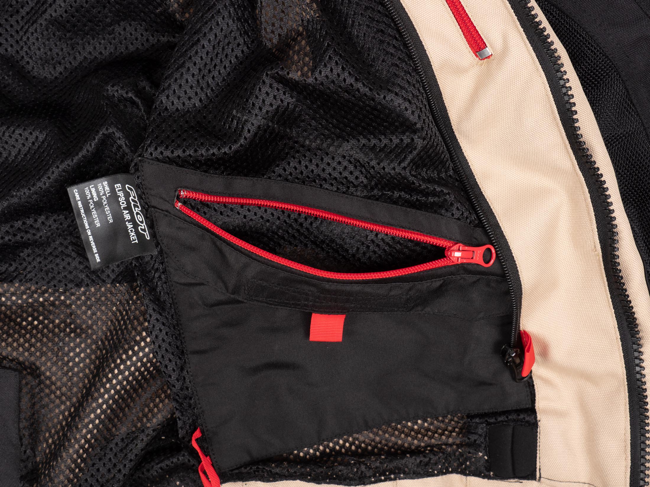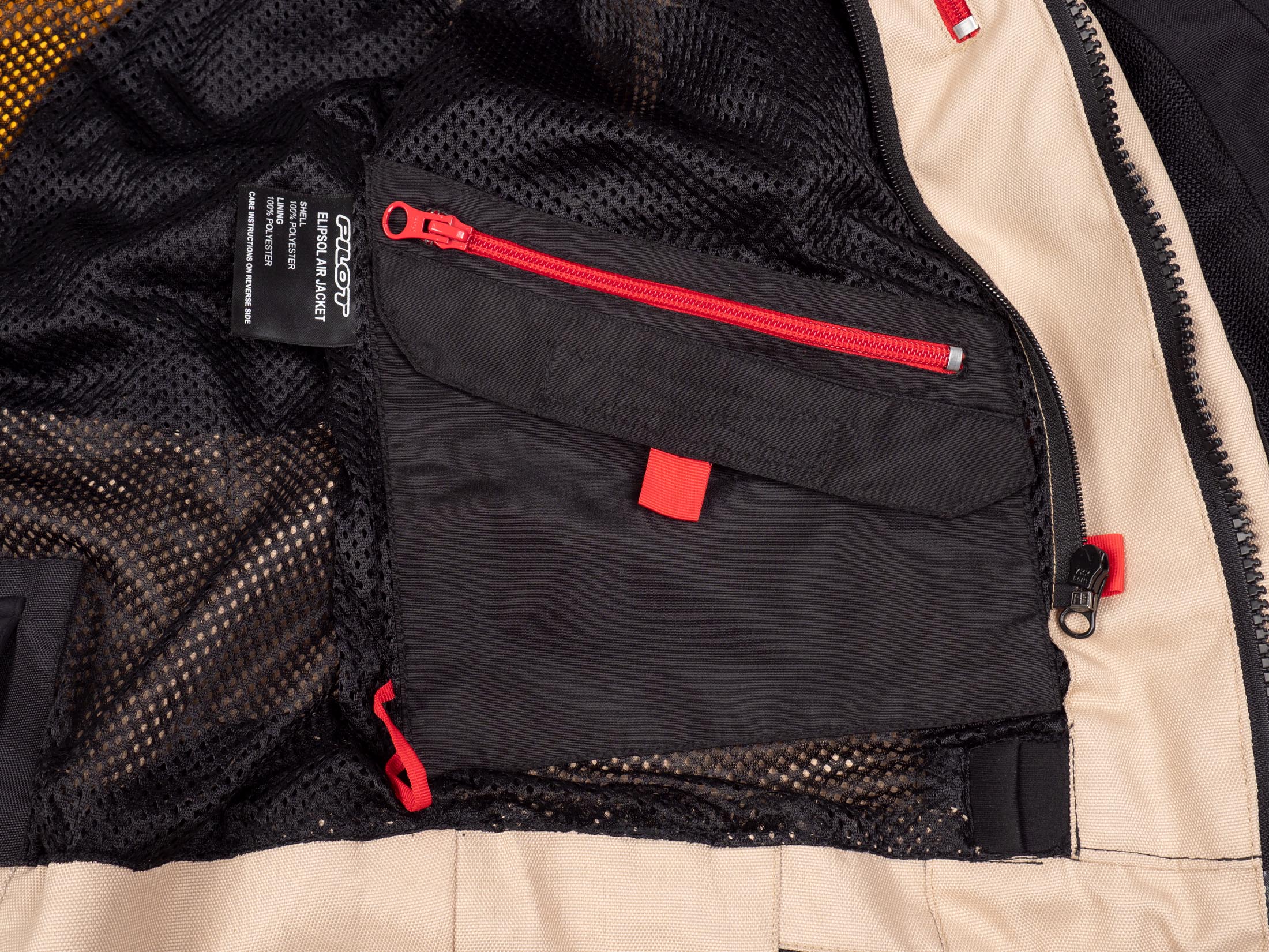 The Elipsol Air is an interesting jacket to categorize as it firmly straddles the line between adventure and sport jacket. It has a more “sporty” cut as it is a little shorter than the typical ¾ length adventure jacket style jacket. At the same time, it has nice roomy lower front pockets and a rabbit pouch in the back for good storage capacity. Perhaps “Adventure-Sport” is the best way to think of it.