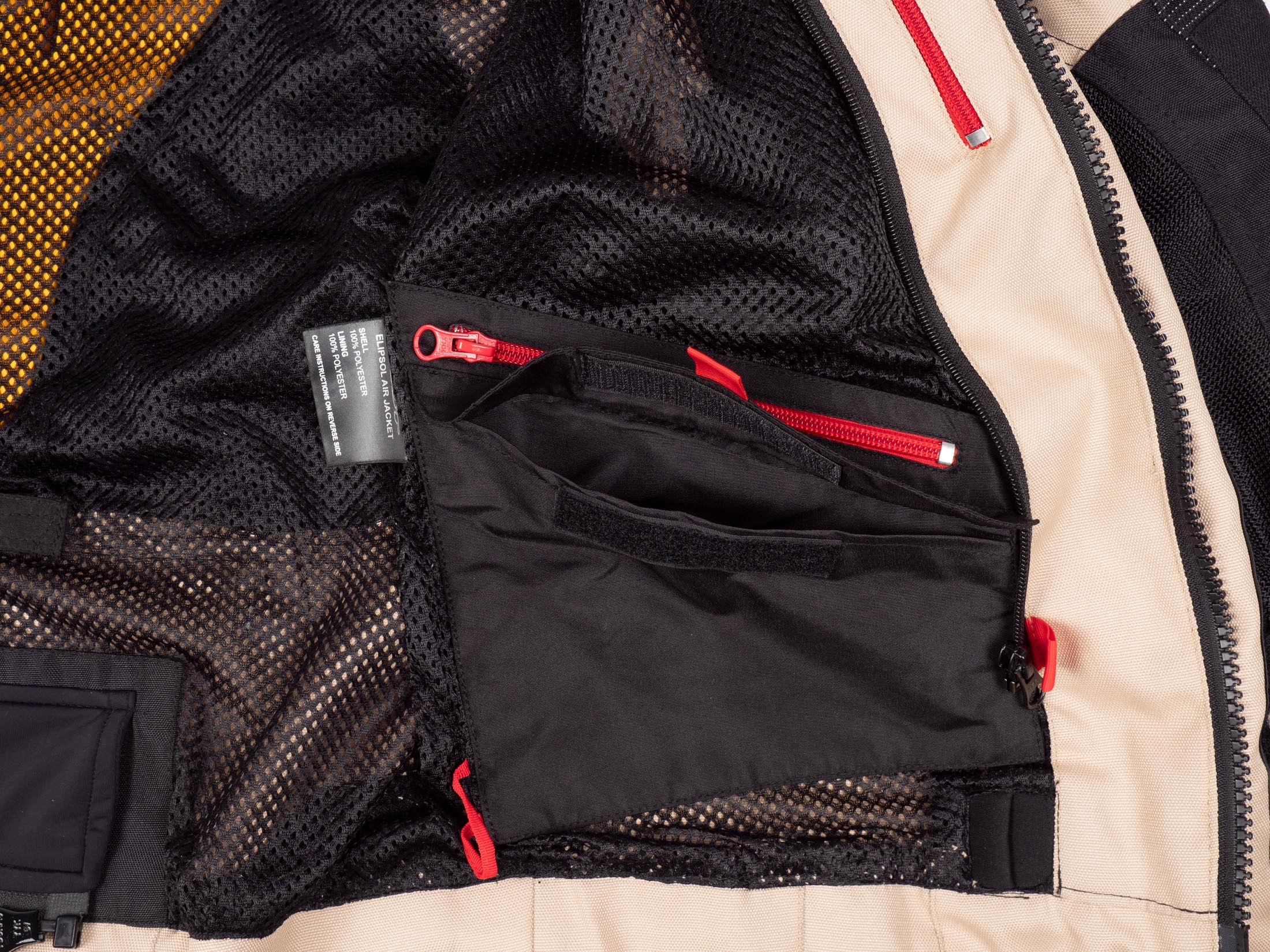 One thing that is a bit of a puzzle is a zipper located near the lower edge of the rear interior. This zipper is 9.5 inches (24.15cm) wide and provides access to the space between the outer shell and mesh liner. It allows one to reach pretty much anywhere inside the jacket but I’m just not sure as to why.