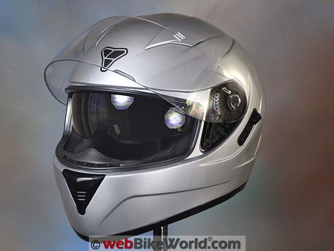 The same optical clarity is present in the internal sun visor also. The face shield is 2.3 mm thick (about average for a motorcycle helmet). As I noted earlier, the detents for each open position for the face shield are quite firm, which can induce flexing when lifting or closing.