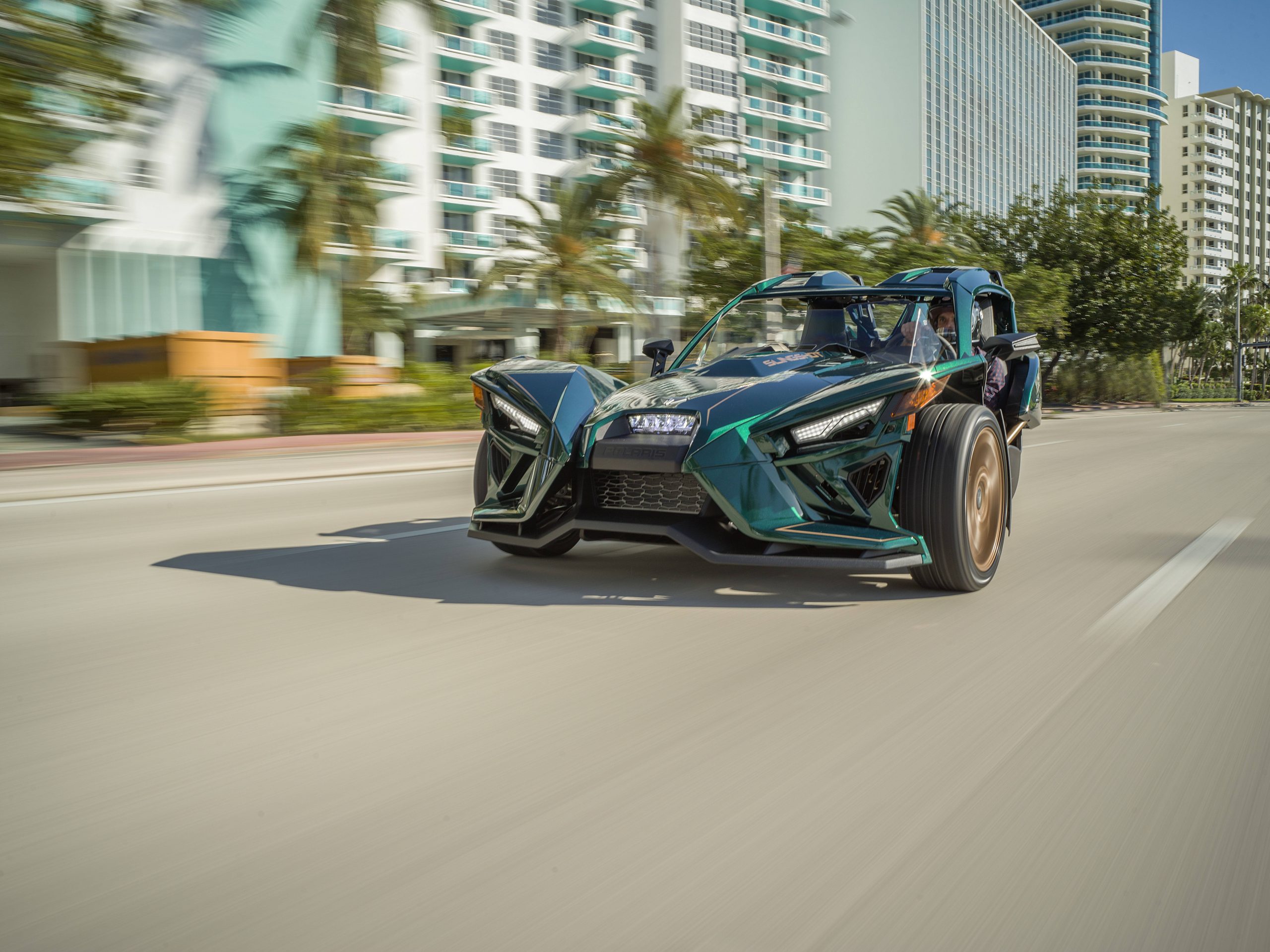 The engine of the trike is the same as found in other Slingshots it gets the company’s four-cylinder ProStar 2.0L engine with an AutoDrive automated manual transmission. Drivers can get a tune from Polaris and make this engine put out 203 hp. That might not sound like an insane amount, but these things are pretty light and that means it flies.