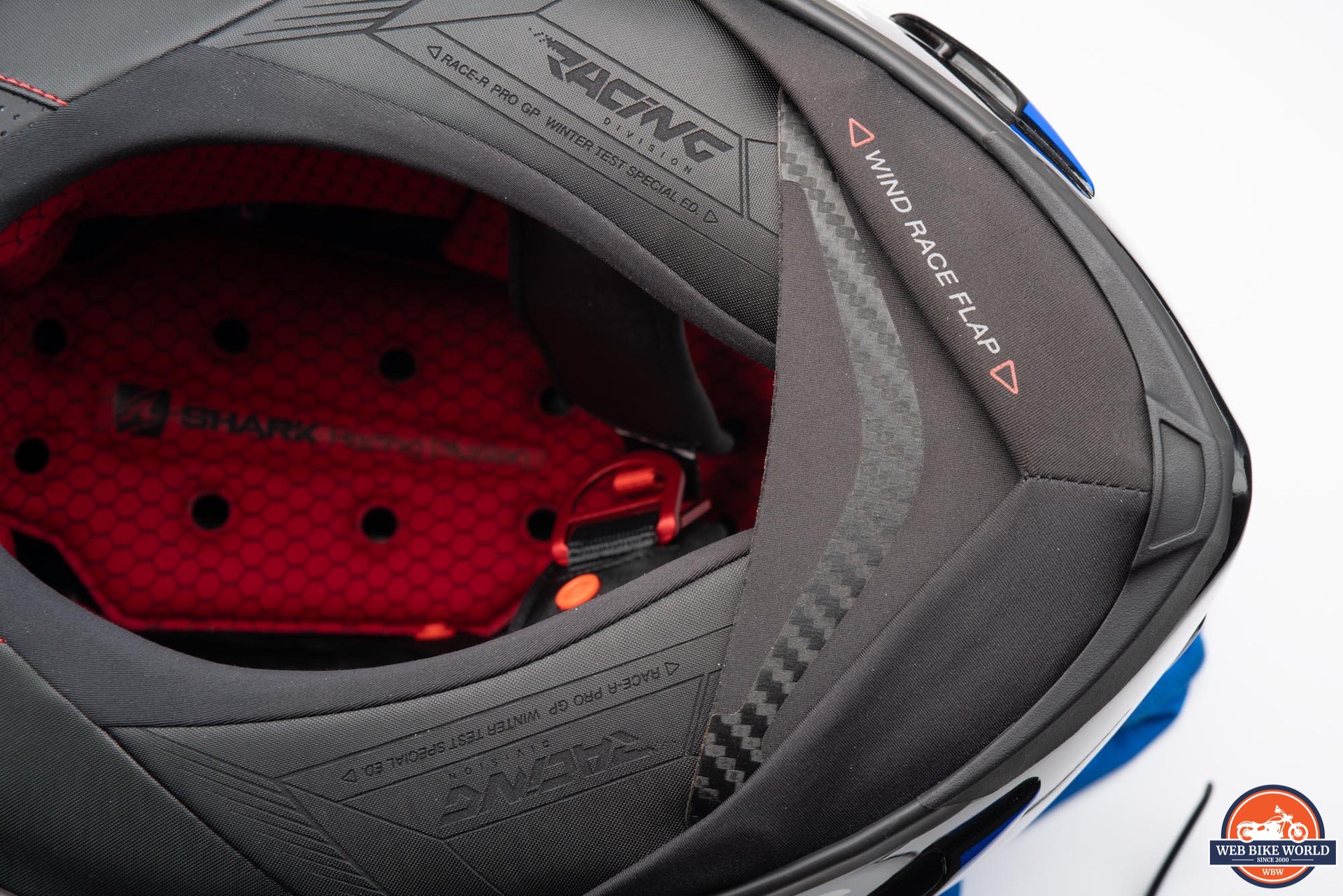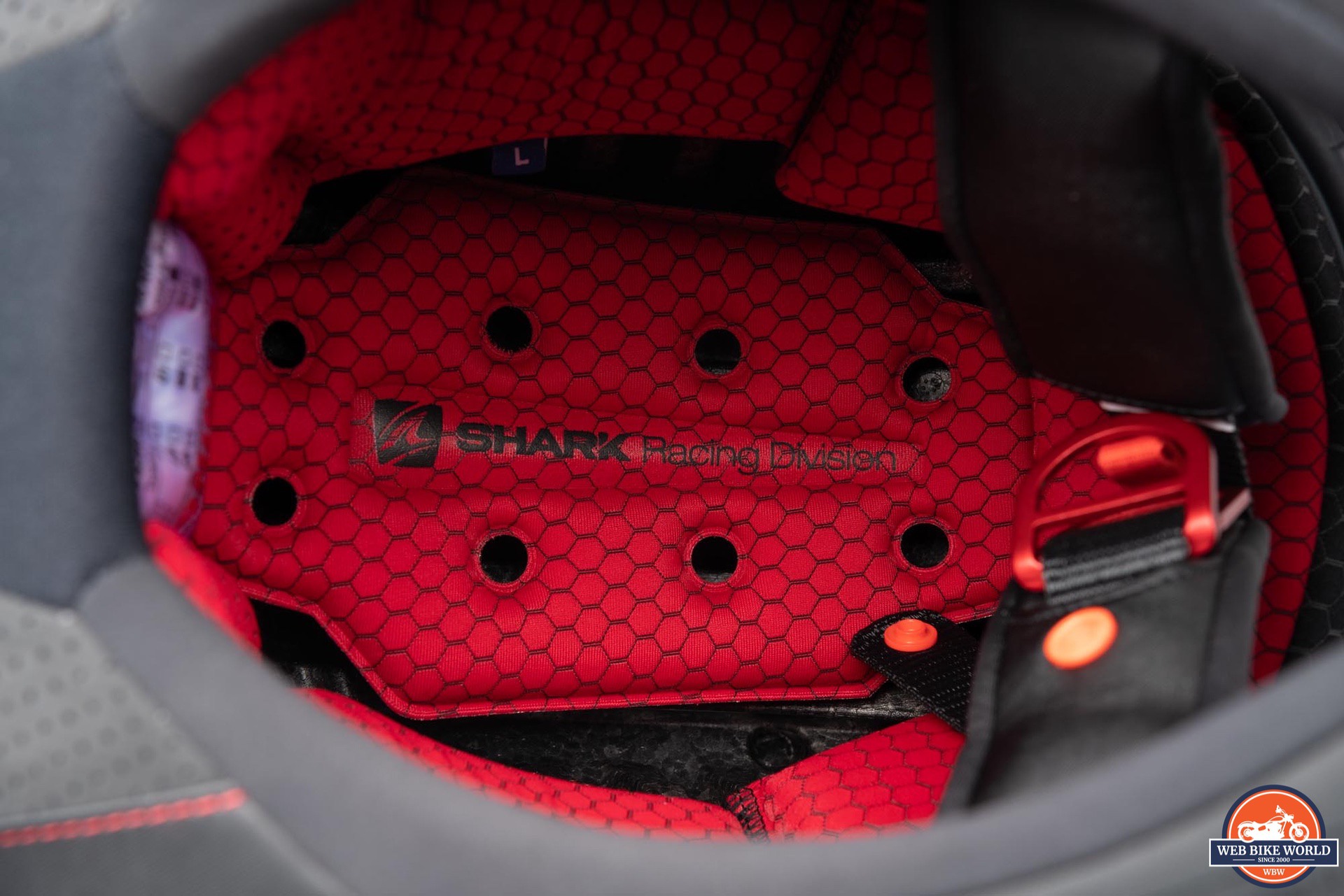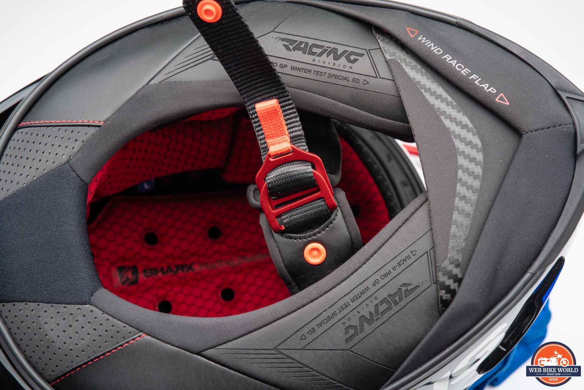 While bluetooth audio might not be the first thing one considers when looking at a helmet like this, the Race-R Pro GP does have cutouts in the EPS for helmet speakers and is compatible with Shark’s own SharkTooth bluetooth system.