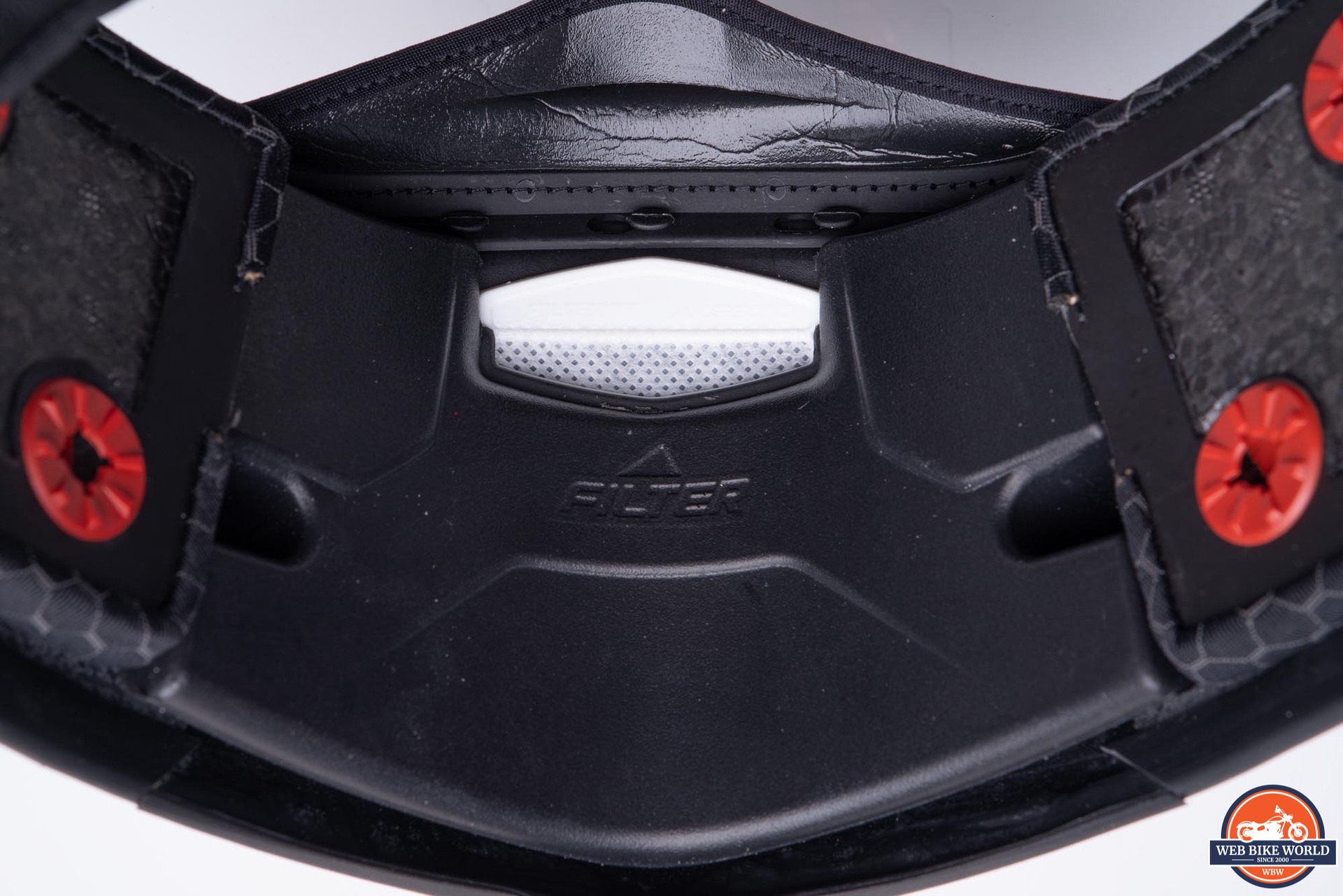 The chin vent includes a small pollution filter located inside the helmet. I’m not sure how much this can help, considering it only filters the air coming directed at the face. Air flowing up against the visor from the secondary path of the chin vent has no filtration plus any air coming up from below the chin won’t be filtered either. I suppose it does help keep particles from being blasted right at the wearer’s mouth and nose, and maybe that’s enough to help.