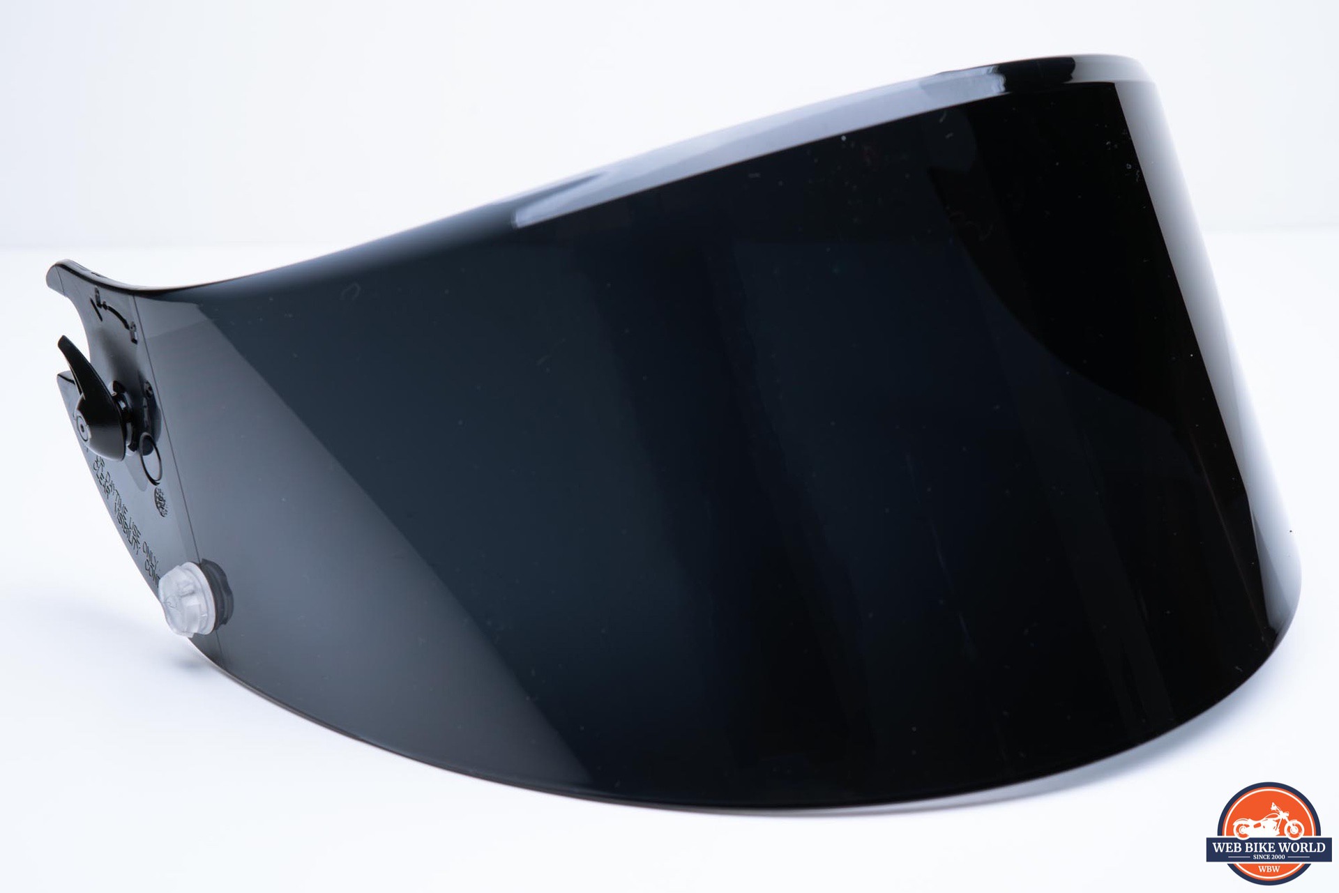 Shark includes a dark tinted visor with the Race-R Pro GP, with emphasis on the word “dark”. This dark smoke visor is so dark it has been clearly labeled “race use only”, and after examining it, I understand why.