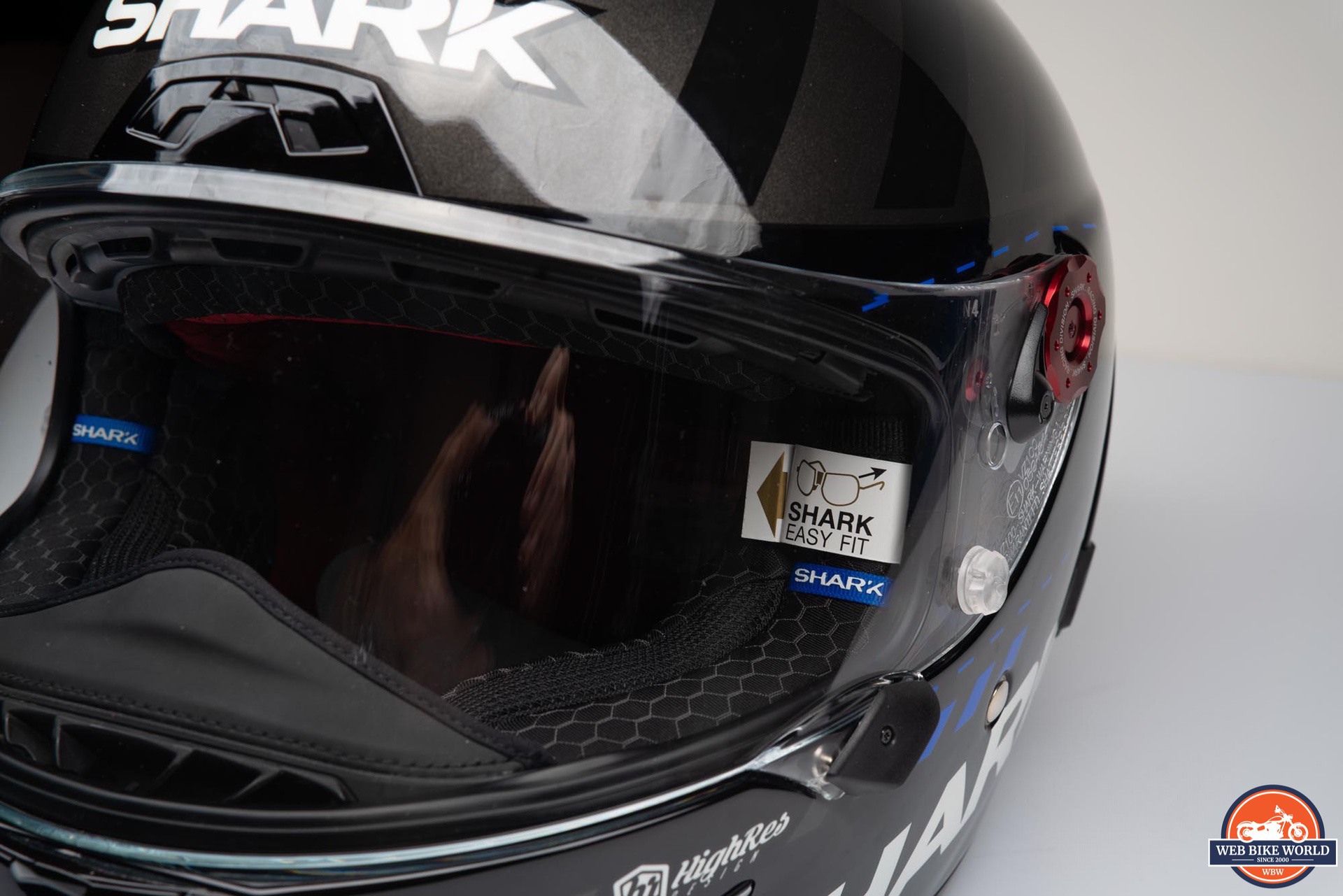 The clarity of the clear visor on the Race-R Pro GP is excellent. This despite the fact the visor is around 4mm thick at the center and then tapers off as you get to the sides. Changes of thickness and the curved nature of a motorcycle helmet visor are a recipe for creating optical distortion, but Shark has obviously spent time to correct this.