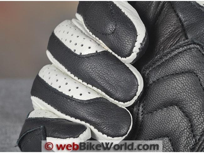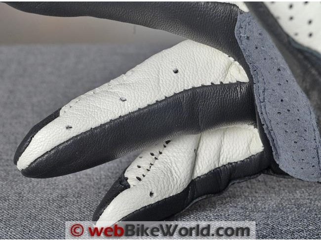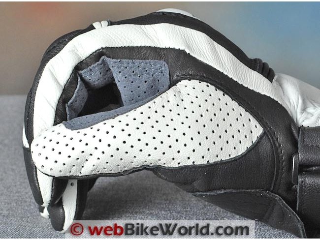 By the way, the gray-colored perforated leather wear pad used on the palm of the gloves is definitely for show, as that section covers the solid leather or goat hide palm, so no air can get through.