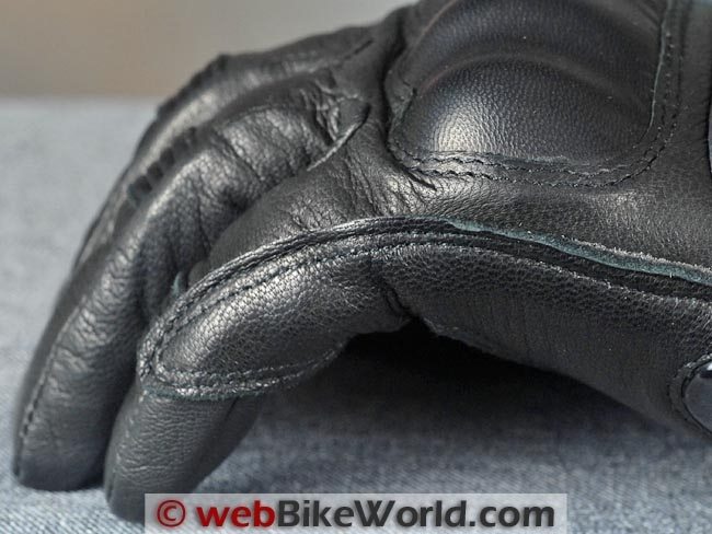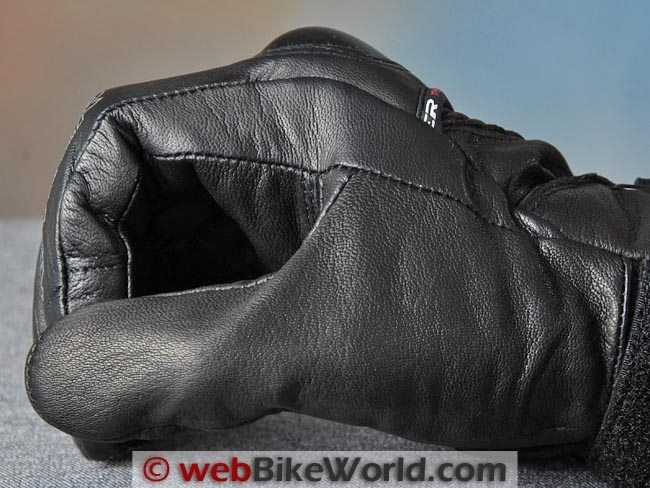 It’s interesting to note also that the thumb has the same construction as the fingers and this provides a lot more room than normally found in the “blade” type construction typically used for the thumbs of motorcycle gloves.