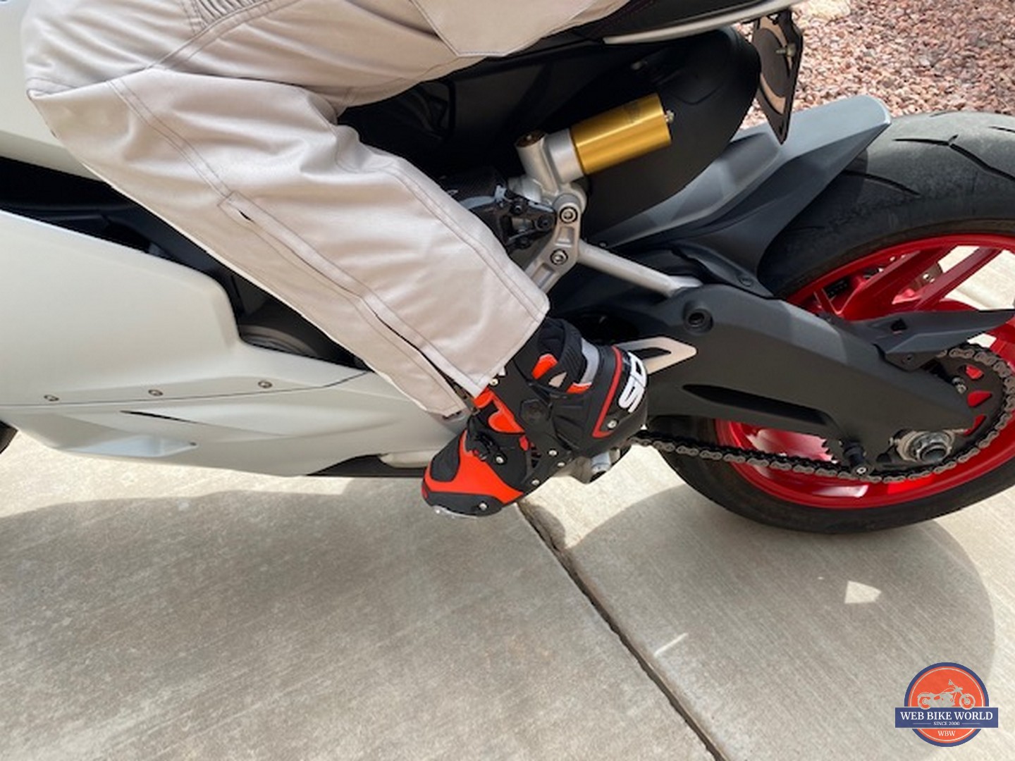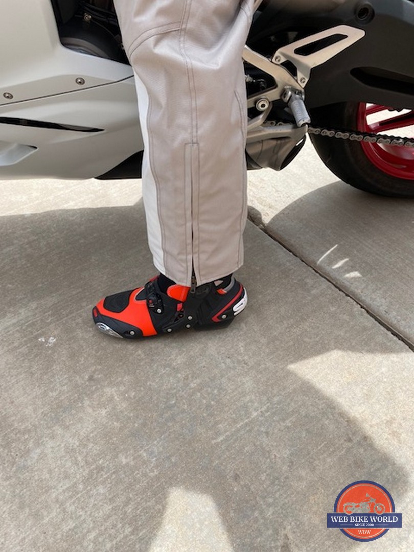 From past experience, I have learned that my legs tend to get really hot with my Ducati exhaust snaking up under my seat and past my thighs. So I always wear a pair of spandex leggings to wick away moisture and ensure that the lining does not stick to my skin.