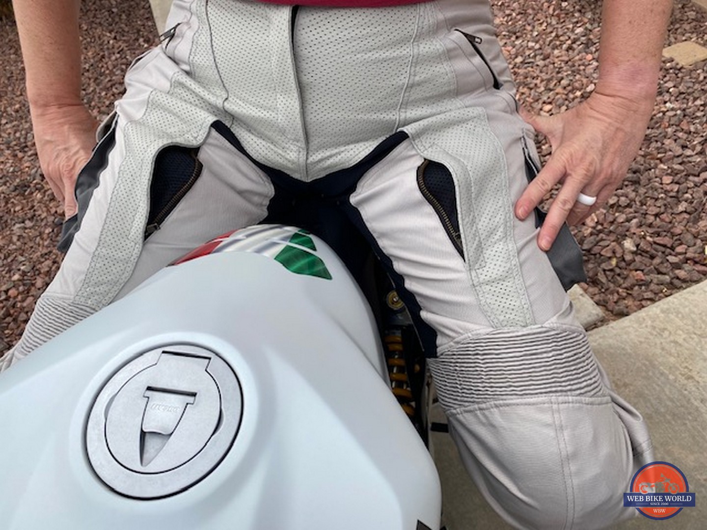 Along the same lines as the Cordura, the perforated leather far exceeded my expectations. The flexibility and comfort are amazing. The only thing better is the airflow. I wondered how comfortable it was going to be to have a leather inset from my wait down across the tops of my thighs. My guess was that it would feel more restrictive than the fabric. But when I jumped on the bike for my first ride, I never noticed anything but the awesome airflow through the perforated leather.
