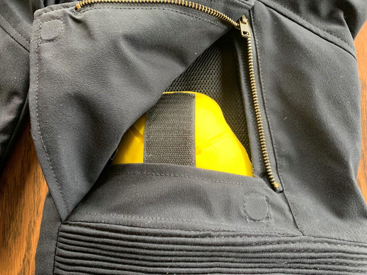 Worked into the lining are pockets for the hip (not included) and knee armor with velcro closures.