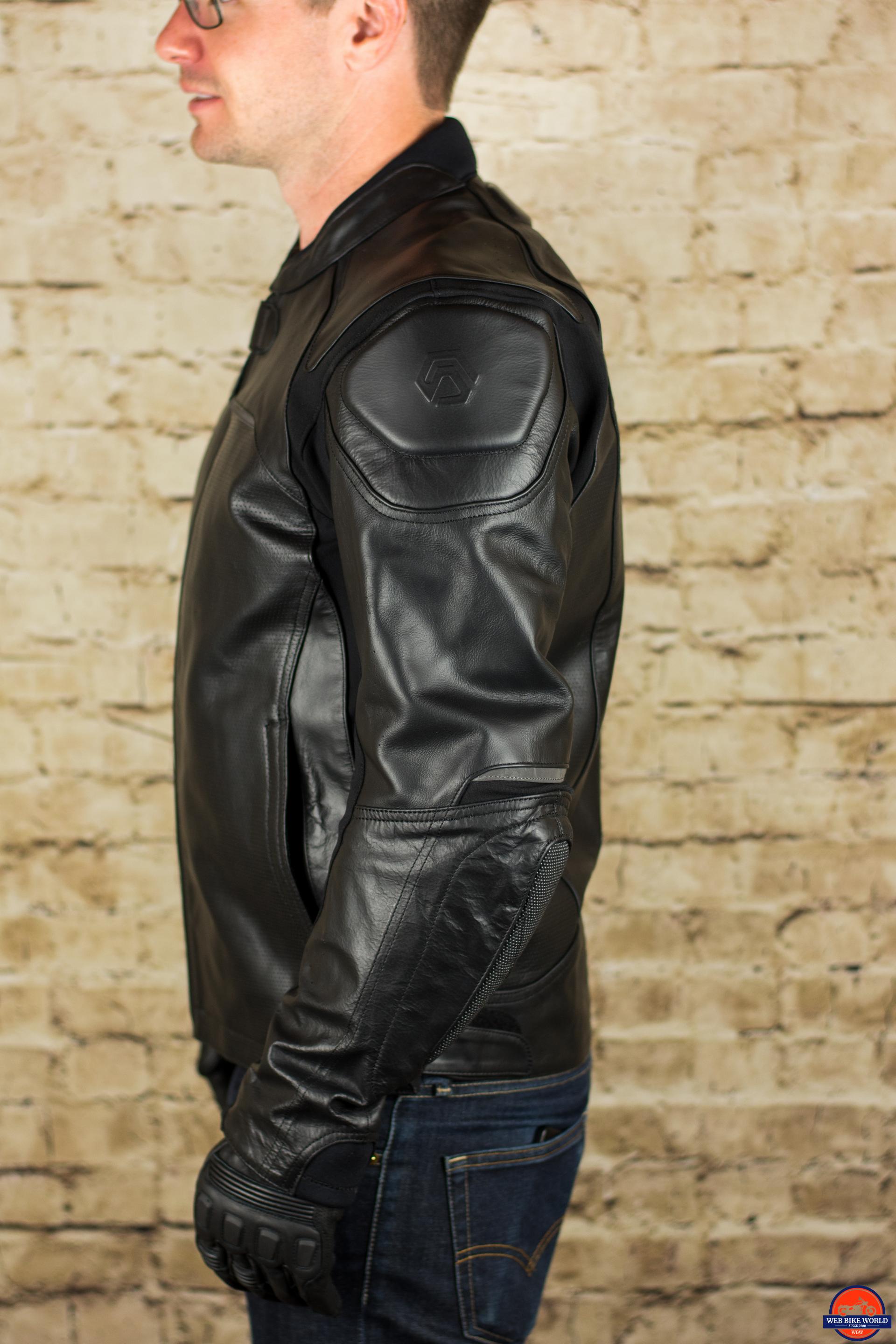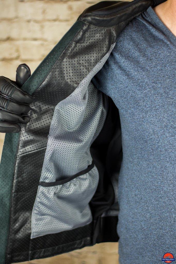 The perforated leather that dominates the front and rear of the Jackson is complemented by the perforated panels on the arms and shoulders.