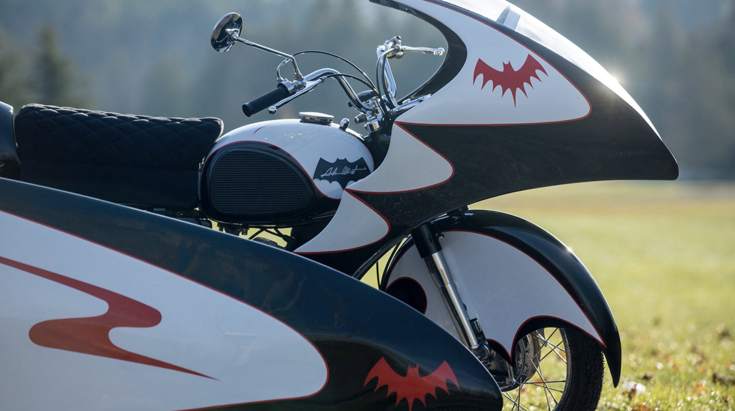 - 1966 Yamaha Catalina 250cc motorcycle meticulously restored into a 1966 Batcycle Replica with Sidecar