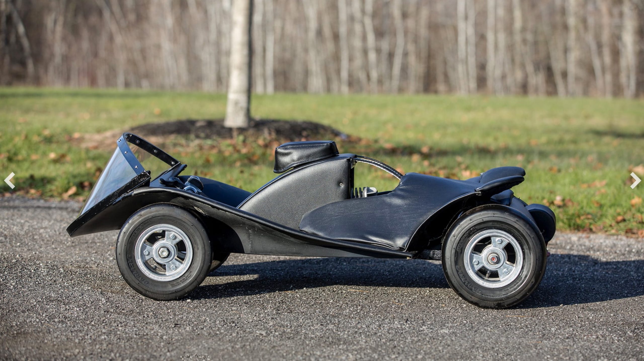 It’s powered by a 55cc Yamaha engine with 3-speed transmission and “impossibly short low-mount handlebar controls,” though the original was fossil fuel-inclined – and according to Mecum’s website, the cart was designed to be launched from the sidecar of the BatCycle, though the “challenging-to-control go-kart rarely went in the intended direction and [Robin] often ended up more white-knuckled than white lighting.”
