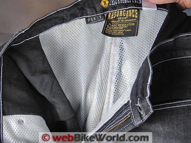 The full-length inner mesh liner is a bit thicker than expected, but it’s smooth and comfortable and helps prevent any chafing from the PEKEV liner, denim or seams. It’s very similar to the type of permanently attached mesh lining found in many motorcycle jackets.