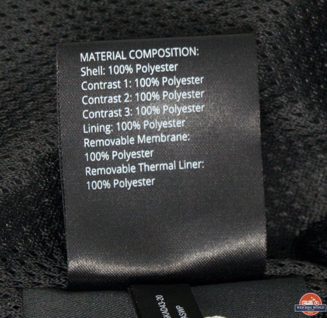 The Richa Airstorm WP uses an Aquashell branded zip-in liner.
