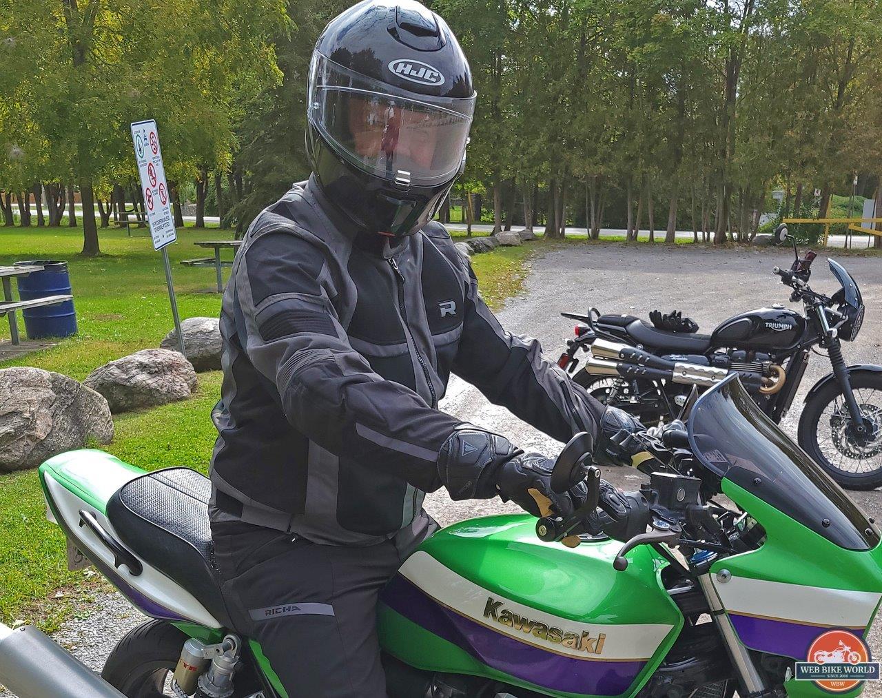 I tested the jacket on two different bikes. The first was a touring/cruiser (Yamaha Stratoliner), and the second was a standard/naked (Kawasaki ZRX) bike.