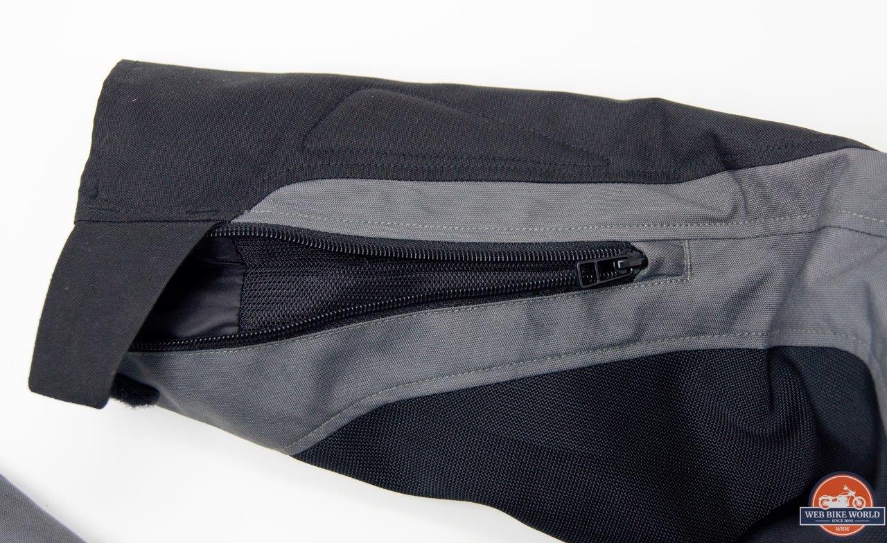 There is no adjustment at the chest or arms, but even so, you can still adjust the fit for comfort. The integrated mesh panels naturally reduce wind turbulence. The cuff adjustment allows for an easy fit into a glove with gauntlets and opens wide enough to put the top of your gloves inside if desired. I found that I typically wore short gloves in warm weather while riding with the Airstorm.