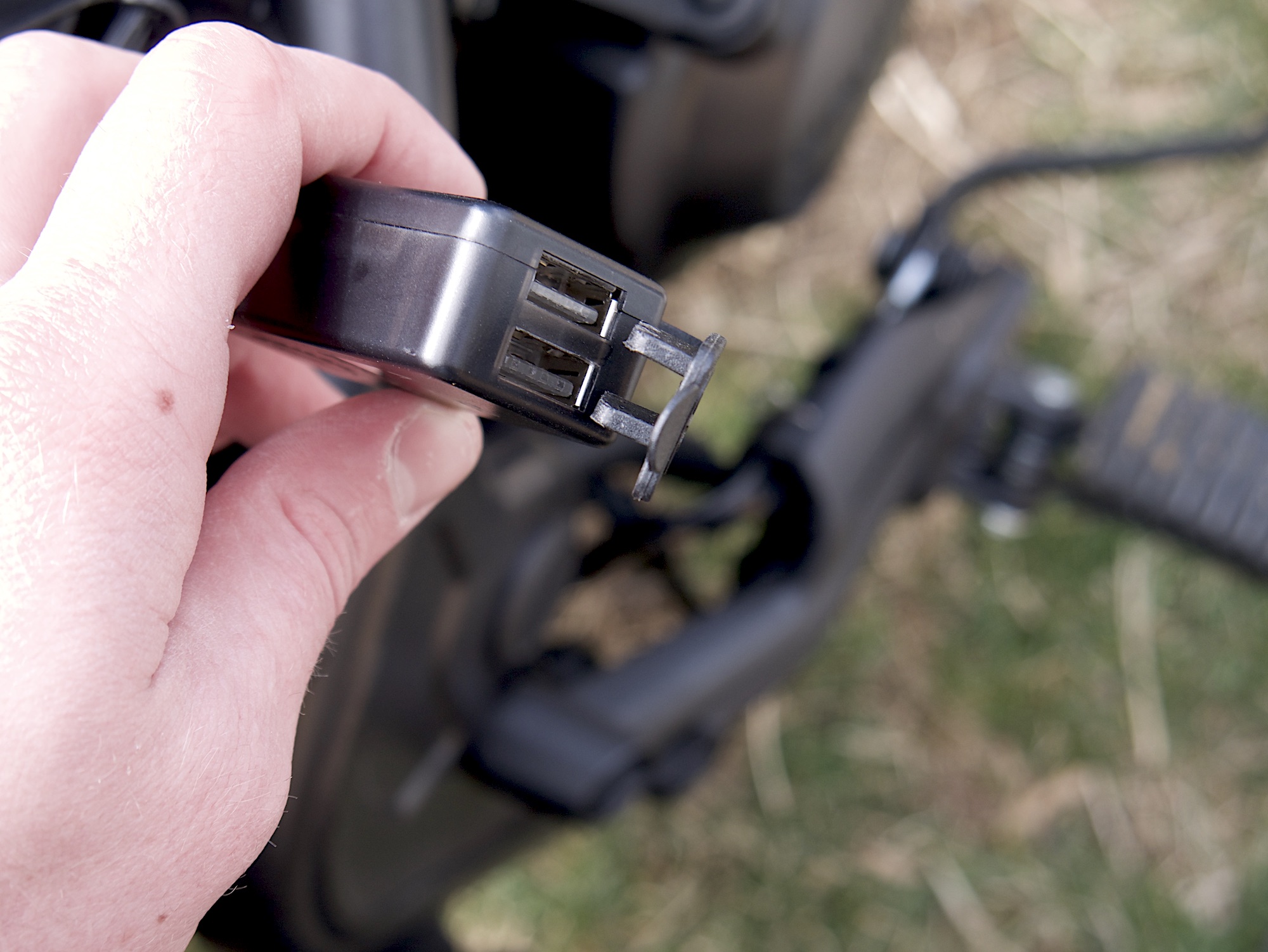 From there, it’s a matter of connecting whatever charging cable you feel like using, and then connecting up your phone and finding a good place to put your phone while you ride.