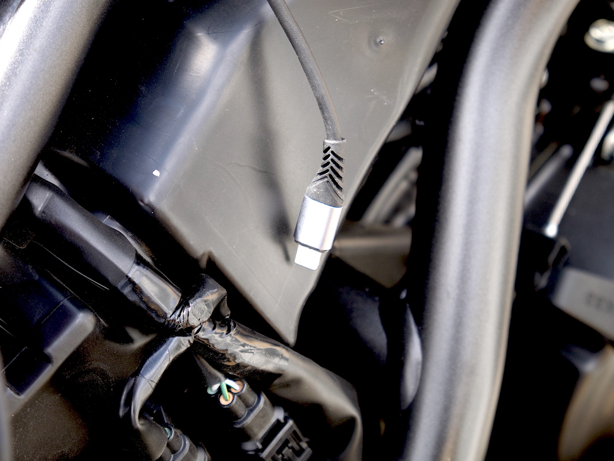 This cord eliminates the need for the adapter, but it does use up your whole SAE connection, whereas the adapter provides two USB charging ports, which can be handy if you’re riding two-up or you have multiple devices.