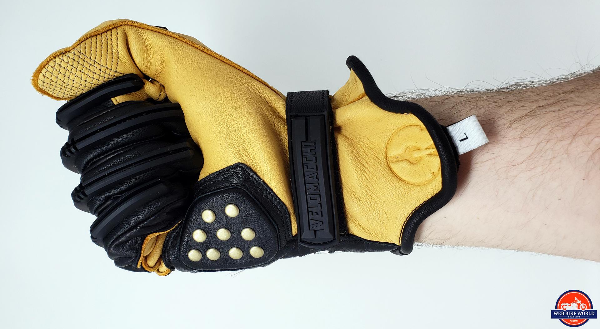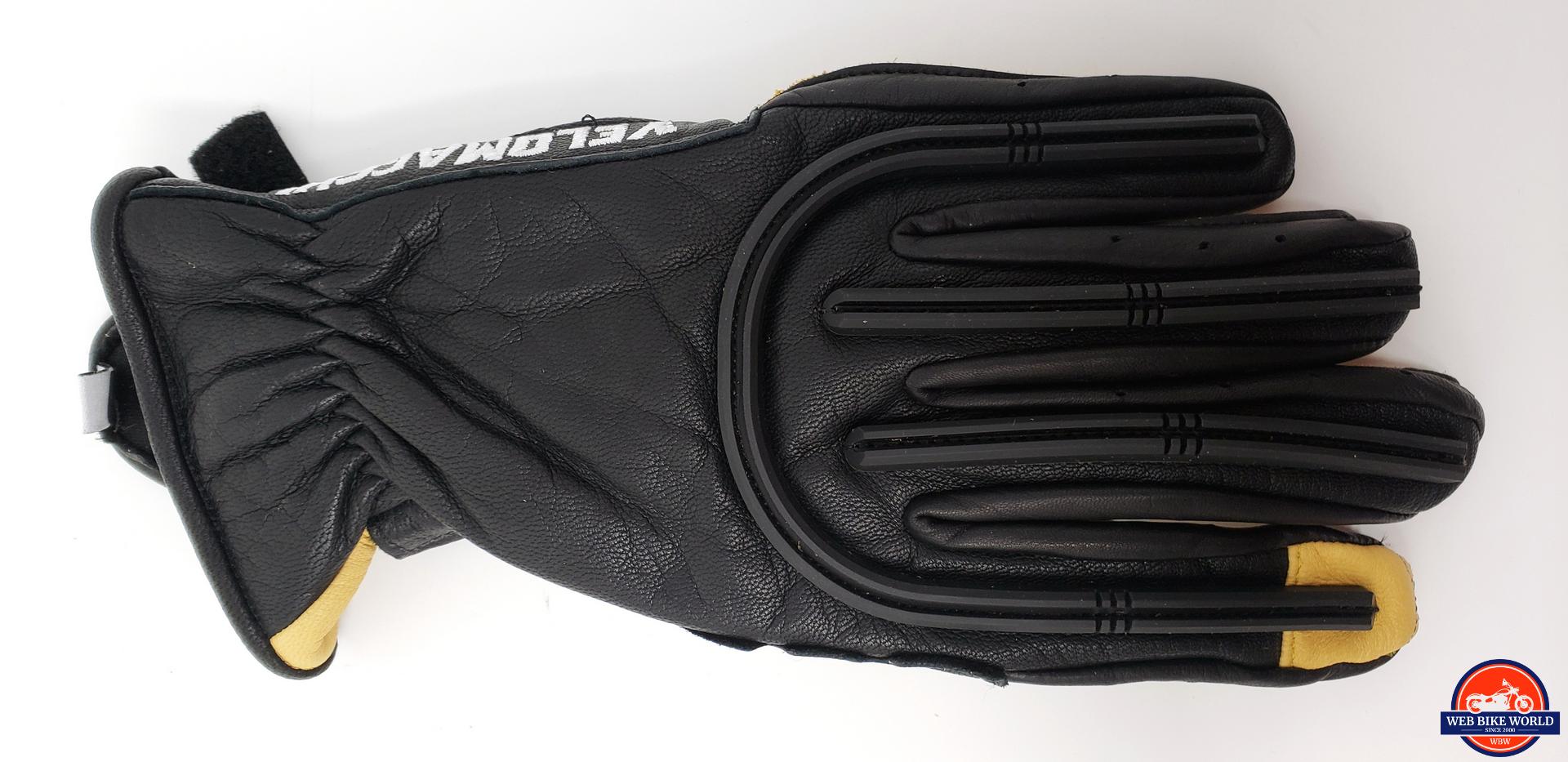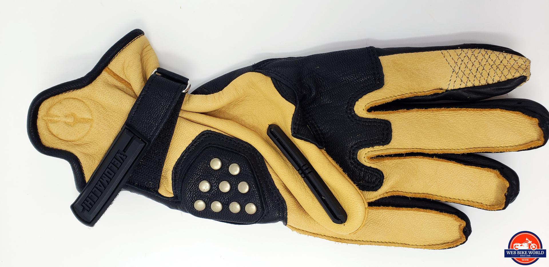 The Speedway’s are unconventional, even if you ignore the 60s theme. These gauntlet-style gloves feature external TPR rubber finger guards that are a marked visual differentiator compared to most gloves, and the palms provide extra protection via a leather palm pad that has brass rivets intermixed for extra abrasion resistance.