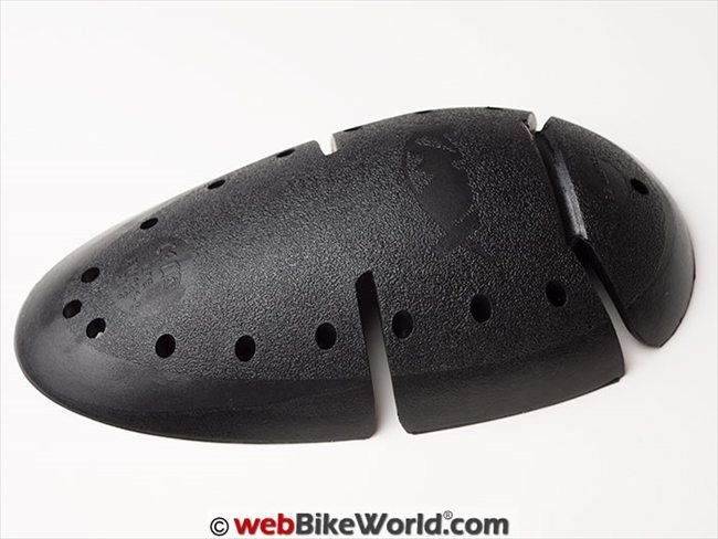 Inside the leg in that area are pockets for the Knox Flexiform CE knee/shin protectors included with the pants. These are thick and rubber-like and made in sections to flex easily.