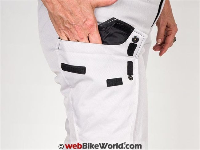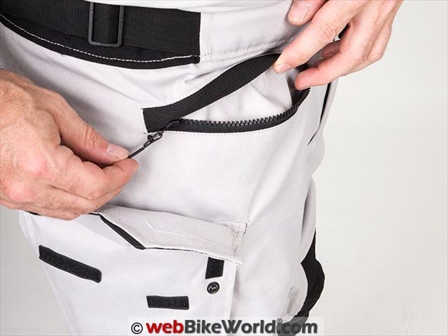 This pocket also appears to be lined with the same Hydratex material as the waterproof interior of the pants. REV’IT! doesn’t mention specifically that this pocket is waterproof but the material feels exactly the same as the liner.