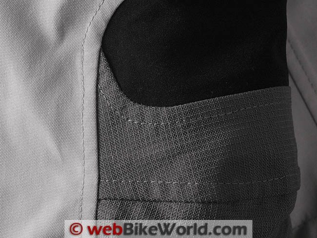 These materials were described in detail in our report on the differences between Gore-Tex fabrics, which also has close-up photos of the membranes. The Gore-Tex Pro Shell Armacor 3-Layer Cool product that is used for the majority of the Everest GTX outfit has two major differences that are discernable to motorcyclists. First, the shell material has a smoother, less textured and slightly “harder” surface finish than the slightly more open weave in the material used on the Defender GTX jacket.