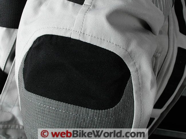 The armor is included in the shoulders and elbows. The snug fit of the jacket keeps the armor in place, but the sport/touring cut makes the armor feel a bit more noticeable than the slightly different fit of the Defender GTX jacket. The arm holes on the Everest GTX do feel just a touch tighter than an adventure-touring cut also.