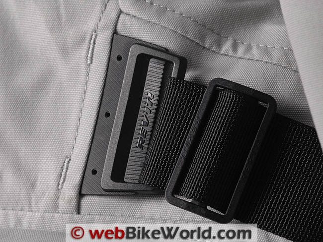 The arms have a single snap adjuster on the forearm, along with a new (for Rev’it) type of upper arm adjuster that cleverly hides the adjustment slider under the arm, which keeps the profile of the jacket looking very sleek indeed.