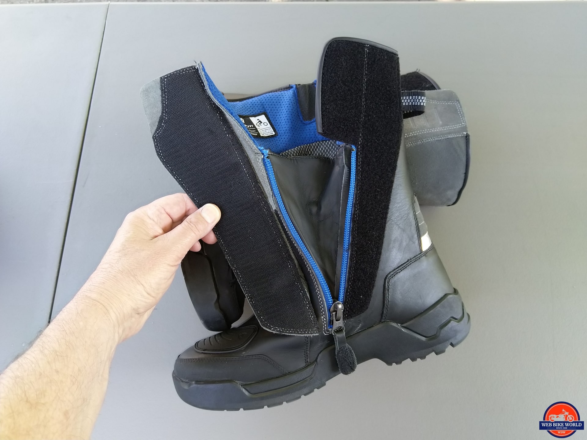 Just save a little bit of energy for boot removal as a bit of force is needed to separate the seemingly industrial strength Velcro of the overflap and then pull down the muscle-toning zipper.