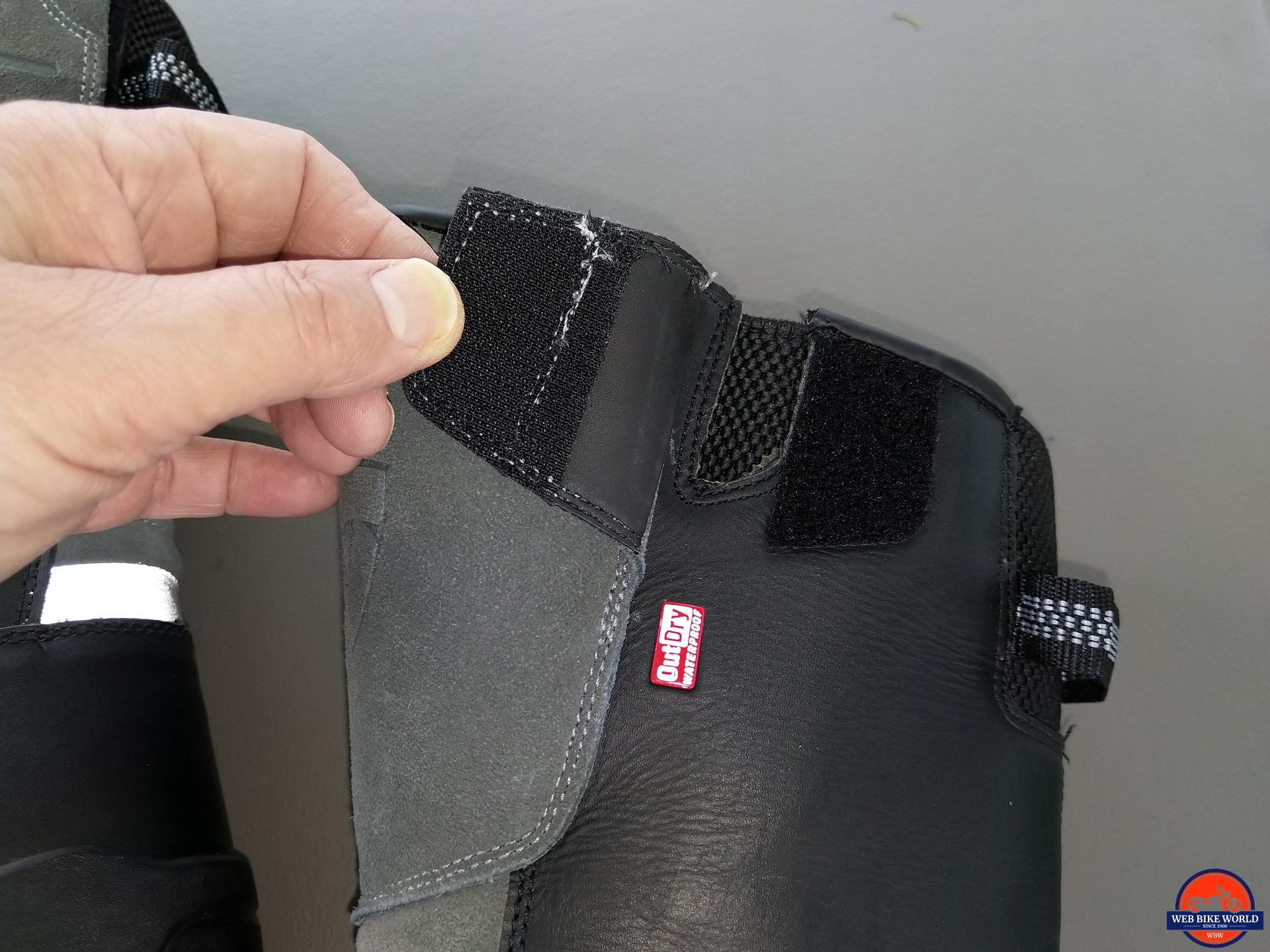 The layer isn’t as strong as hoped for and not even close in durability compared to the more robust and encompassing layer on the Discovery OutDry boot. The Gravel OutDry bumper layer only took a couple of foot-peg and one shifter encounter to damage it on the inside of the left boot (more on this later).