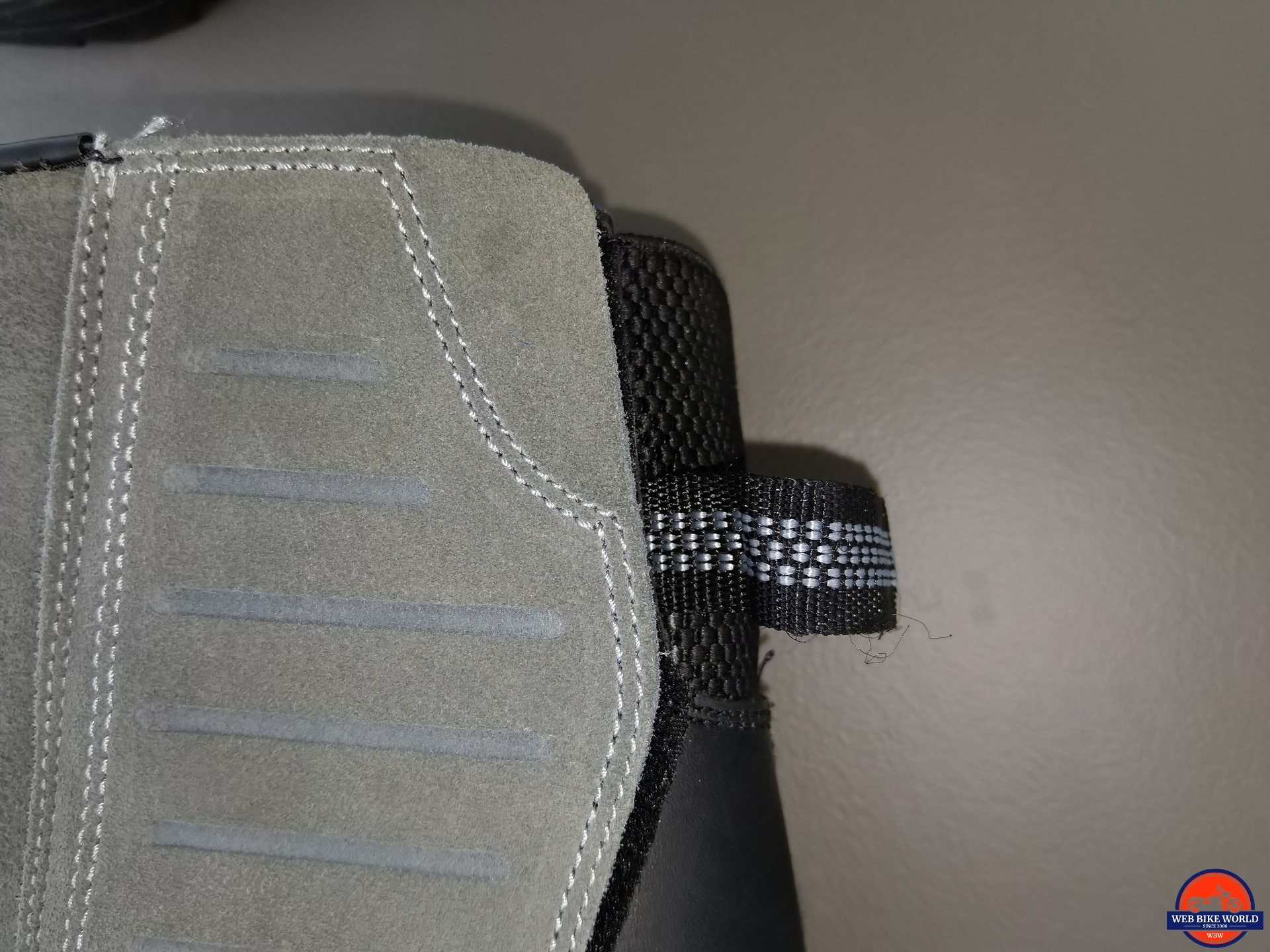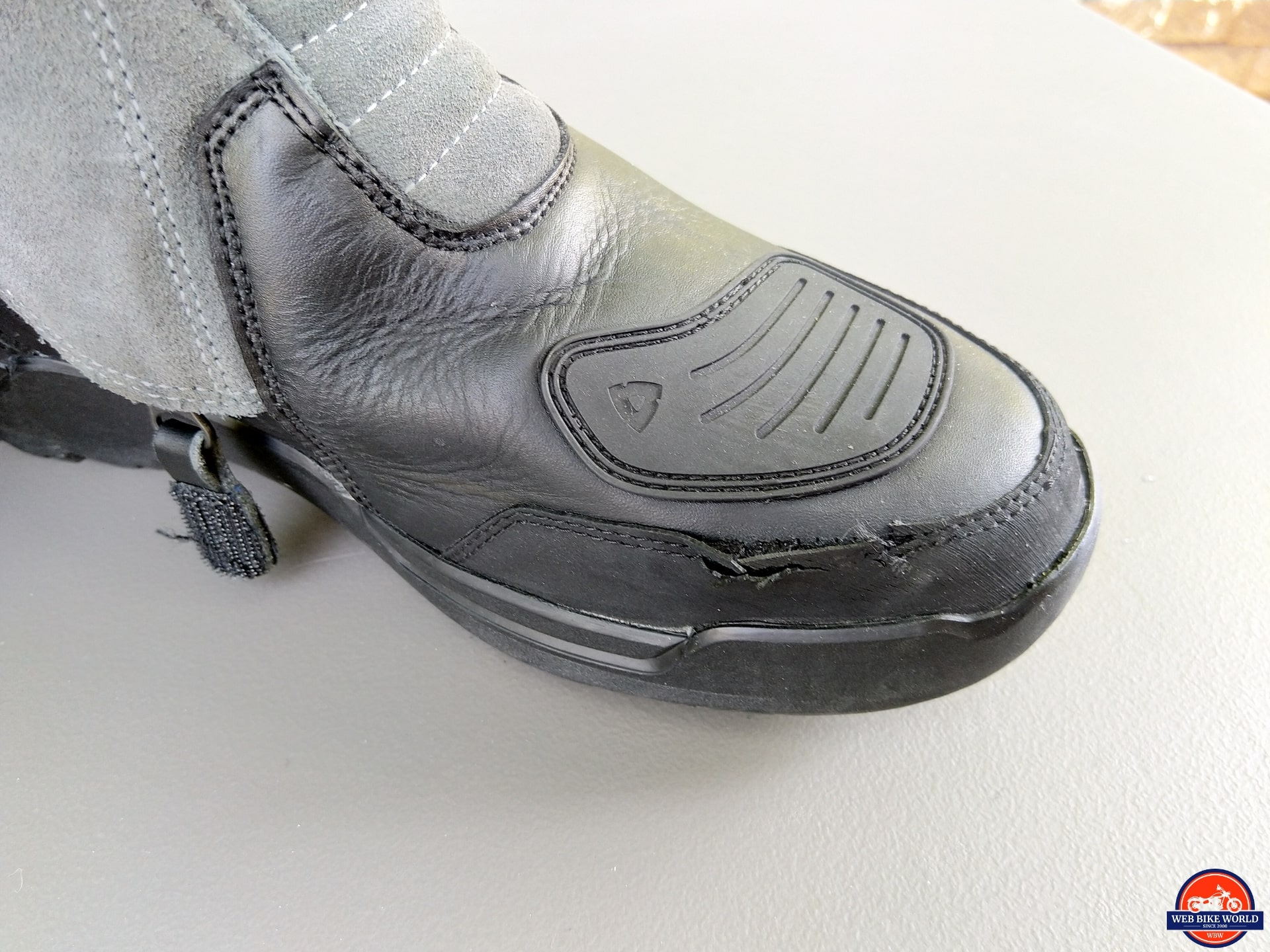 As identified earlier, the only issue encountered so far related to durability is the tear in the protective sealing rubber layer and some of the companion stitching due to slippage off the left peg and related gear shift encounters.