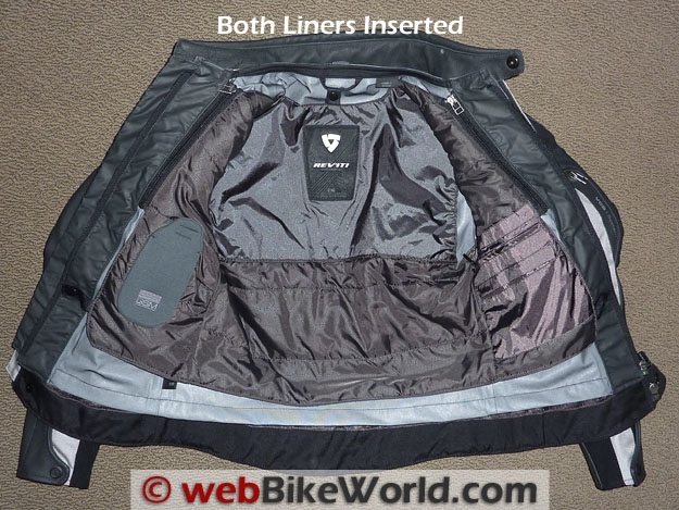 Wear either layer, or both, depending on the temperature and your needs. On hot days, wear just the shell for maximum air flow through the mesh panels and unzip the vents over the biceps for even more air flow. Incidentally, the jacket has a permanent 100% polyester mesh lining which finishes the inside of the jacket nicely.