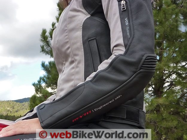 The tapered sleeves should fit under most gauntlet gloves and are just large enough to fit over the short cuffs on the REV’IT! Airvolution women’s Gloves (review).