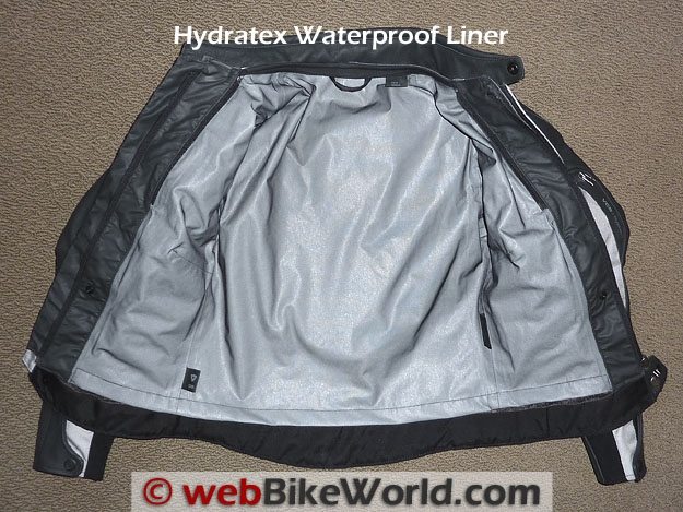 This long-sleeved liner has micropores that keep water drops out while letting moisture escape. The seams on the Hydratex liner are also taped to prevent moisture from getting in through the seams. The Hydratex liner has elastic cuffs and a zippered closure with flaps that cover the zipper to block air flow and water when the rider wants to stay warm and dry.