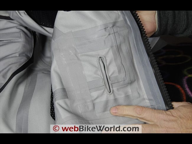 The Infinity suit has a special maze-like opening in the left-hand side of the chest that allows an electric cord from a heated vest or jacket to be passed through to the outside while still preventing water from leaking in (see the Lightbox photos).