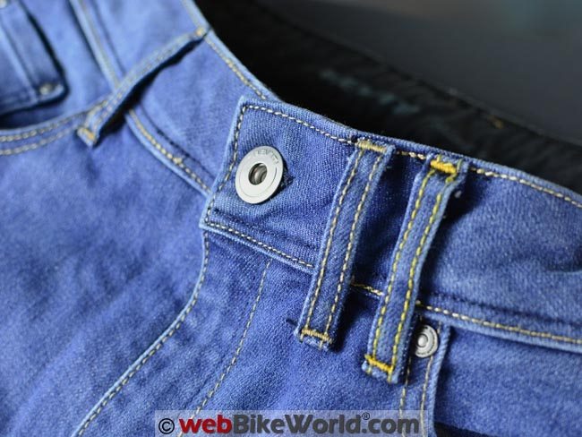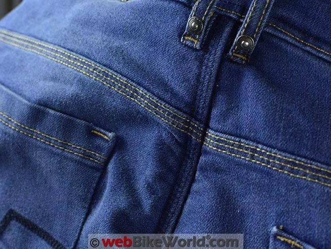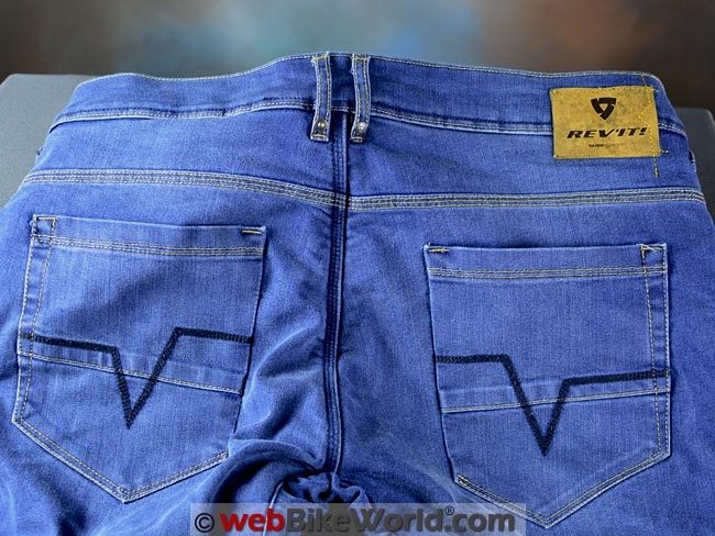 This means triple-stitched for strength and all of the REV’IT! jeans have dual belt loops in the center rear for strength and to connect to the excellent REV’IT! Safeway belt (review).