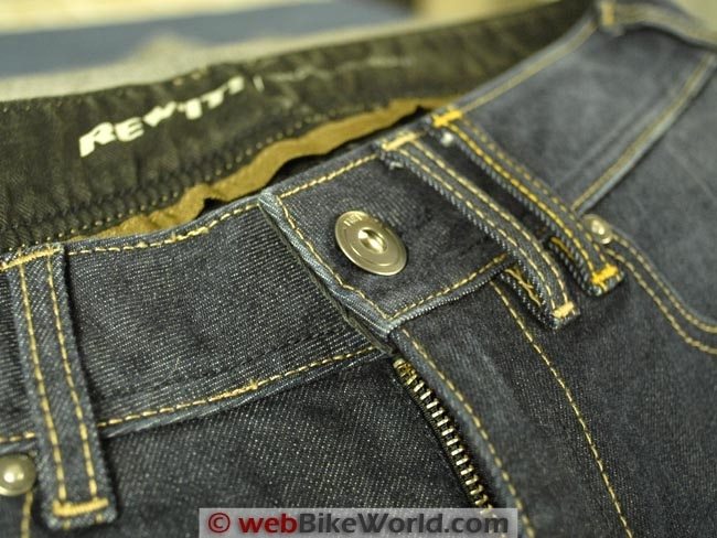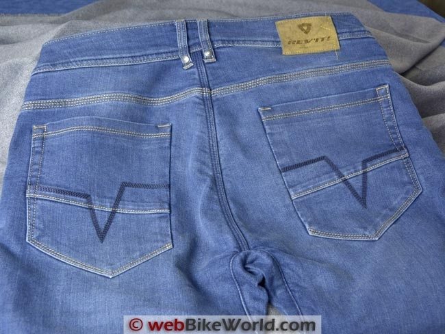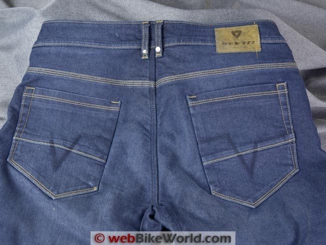 The seams are triple-stitched for strength and all of the REV’IT! jeans have dual belt loops in the center rear for strength and to connect to the REV’IT! Safeway belt (review).