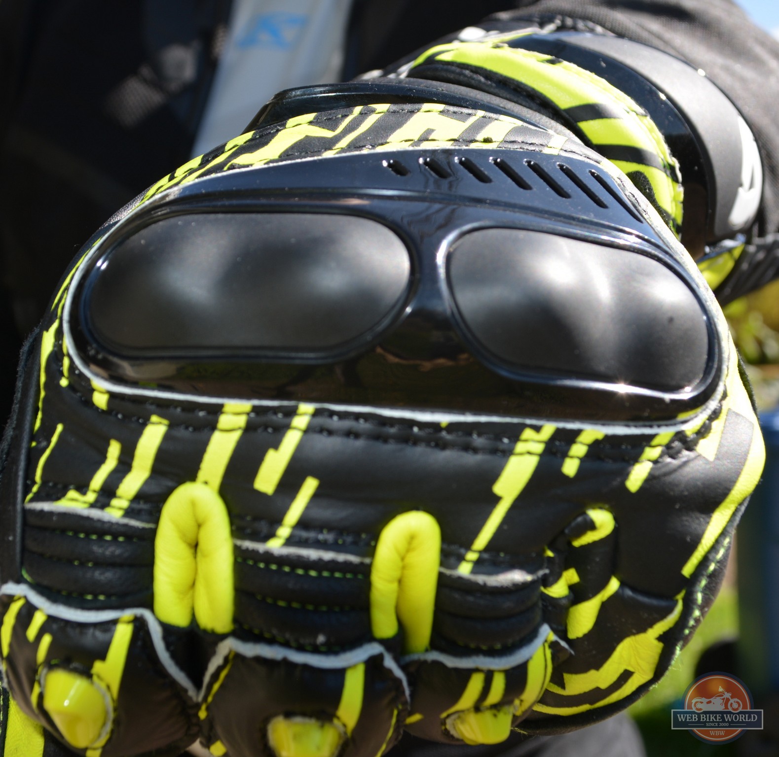 The way the glove is stiffened around the thumb, index, and middle fingers, especially on the cowhide uppers, makes the throttle grip sit naturally between those three contact points. Instead of using the wrist with some finger motion to move the throttle, these gloves make moving those three fingers into almost telepathic commands to the engine. The other two fingers, the ring and little fingers, naturally curve around the grips as well, and offer enough contact for excellent feel of the way the front is behaving, and make countersteering, again, almost telepathic.